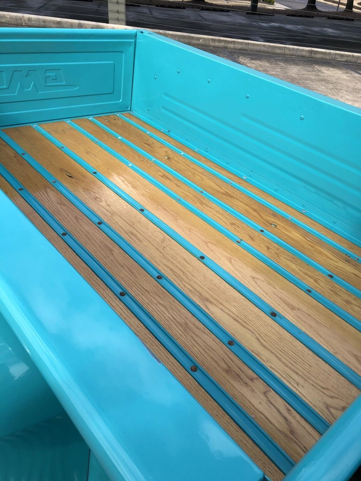 National XT 4000 tires are mounted at each corner, and the bed floor was refurbished using wood planks separated by body-color runners.