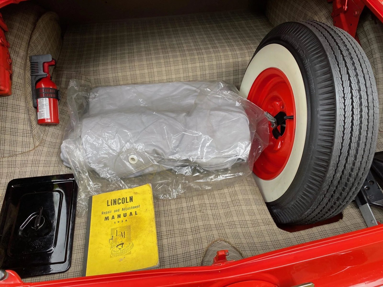 Garfield wide-whitewall tires are mounted at all four corners, and a matching spare fitted with a BFGoodrich tire resides in the trunk.