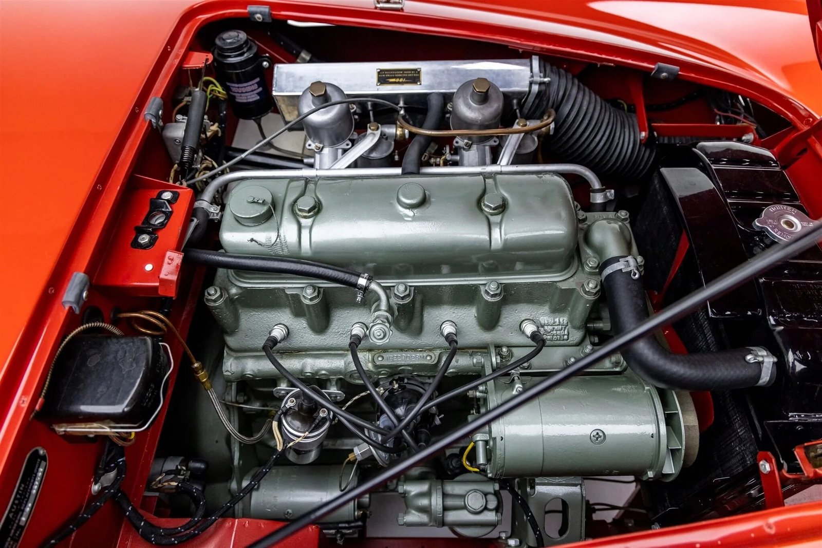The 2,660cc inline-four was factory-rated at 110 horsepower and features twin SU HD6 carburetors, 8.1:1-compression pistons, a high-lift camshaft, and a cold-air box.