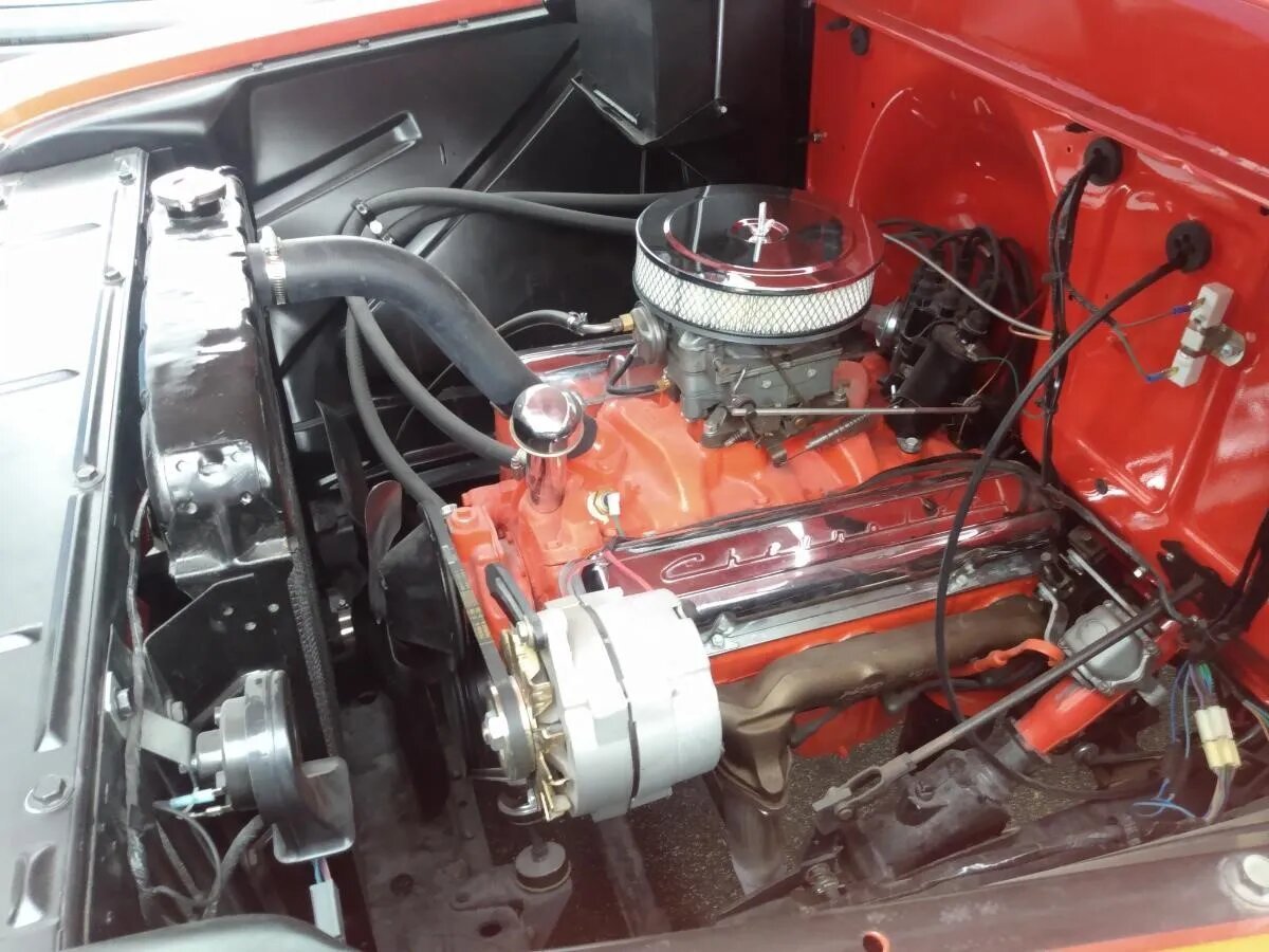 The 265ci V8 have been rebuilt and features a Power Pack four-barrel carburetor, intake manifold, camshaft, and cylinder heads as well as an orange-finished intake manifold, “ram’s horn”-style exhaust manifolds, and chrome Chevrolet-script valve covers. Additional service under current ownership included rebuilding the carburetor and replacing the starter, radiator, fuel tank and lines, hoses, belts, and ground straps. An oil change was performed in preparation for sale.