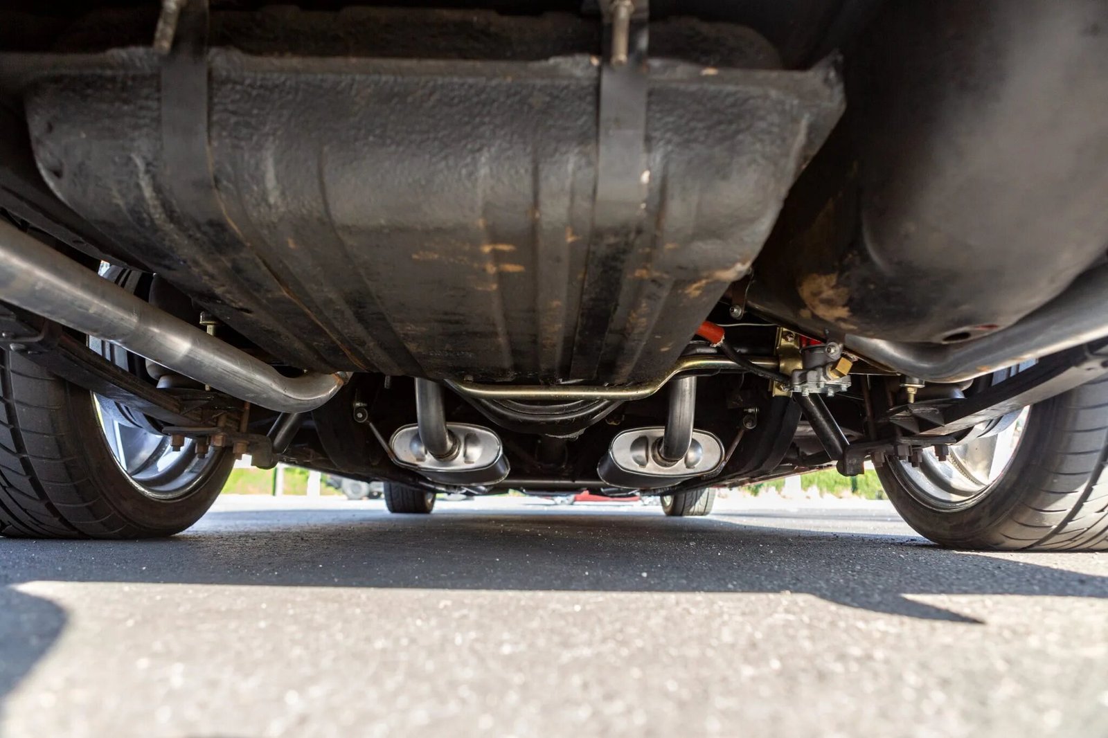 The car is equipped with power steering, front and rear sway bars, and an adjustable air suspension system with a trunk-mounted compressor and tank.