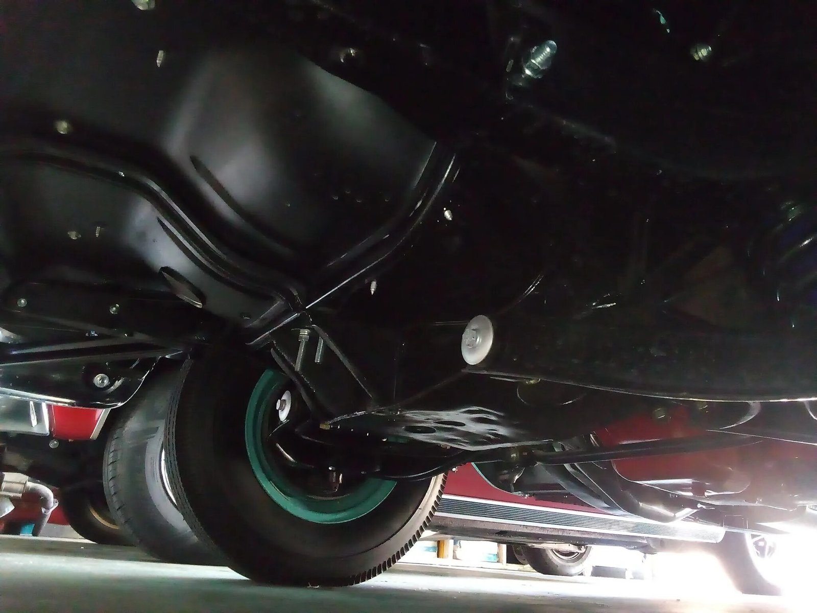 The Powerglide two-speed automatic transmission was rebuilt in February 2022 by Frank’s Automatic Transmission. The differential has been fitted with replacement bearings and seals. The car is equipped with a dual exhaust system. A protective undercoating has been applied to the underbody.