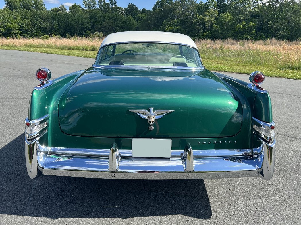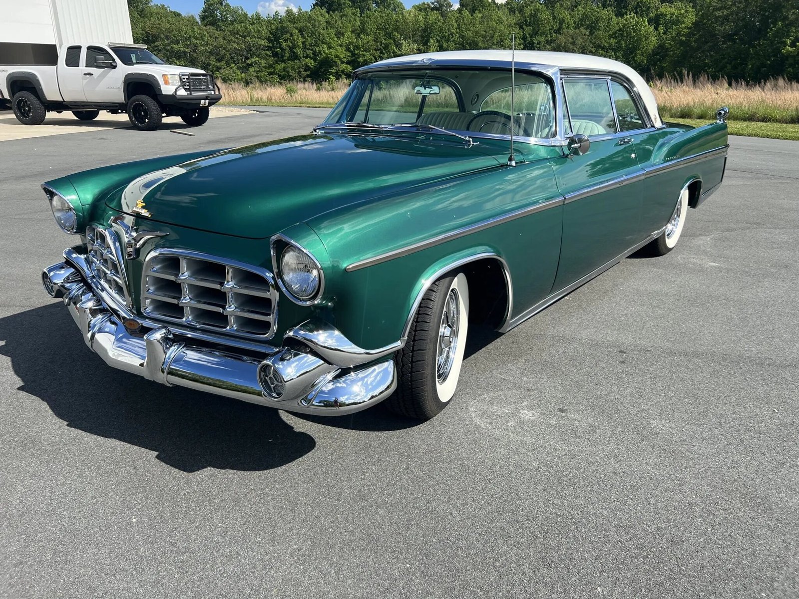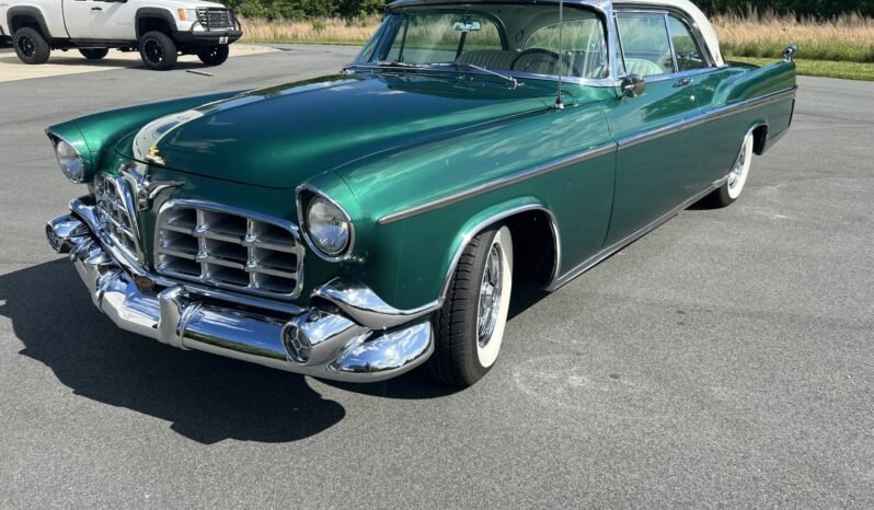 This 1956 Imperial Southampton is a two-door hardtop coupe that have been refurbished in the 1990s. The car is finished in green with a white roof over green and white upholstery and is powered by a 354ci FirePower V8 paired with a two-speed automatic transmission. Additional equipment includes floating taillights, 15″ wire wheels, power steering, bench seating, Vintage Air climate control, a dash-mounted clock, and a push-button AM radio.
