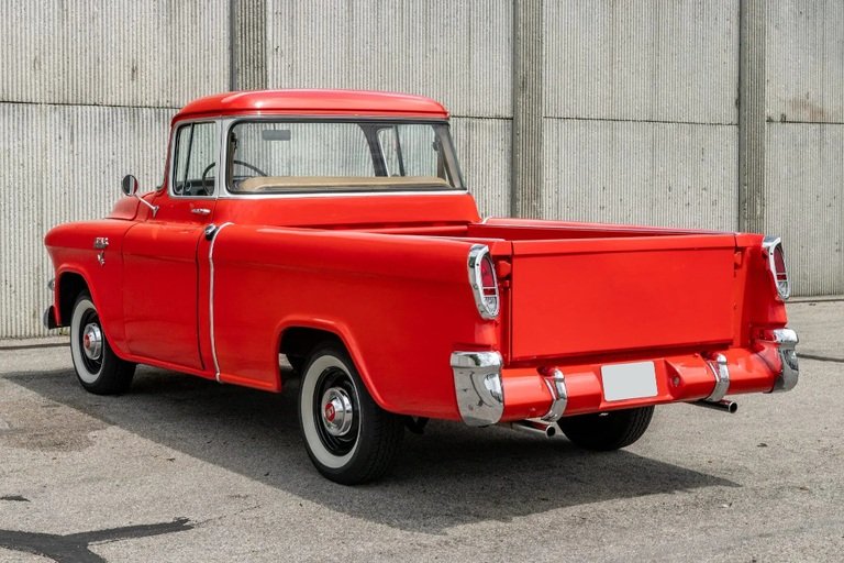 The truck is finished in red and have undergone rust remediation and a repaint during the refurbishment in the late 1980s.