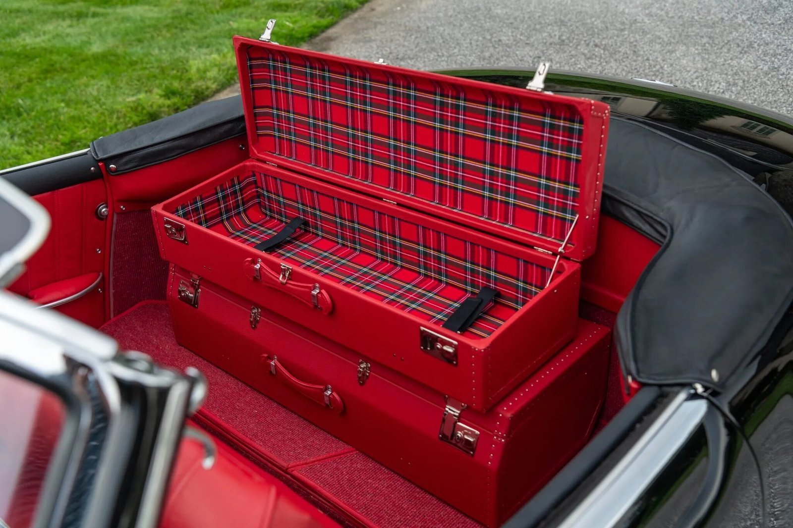 A set of red leather fitted luggage is included in the sale.