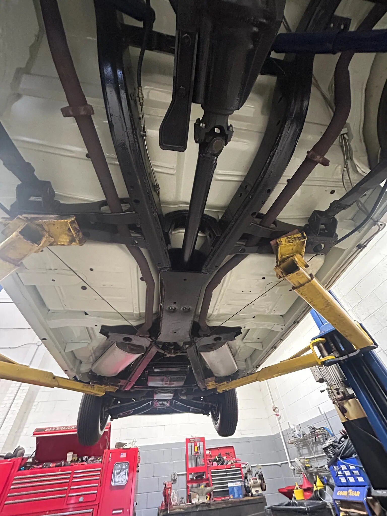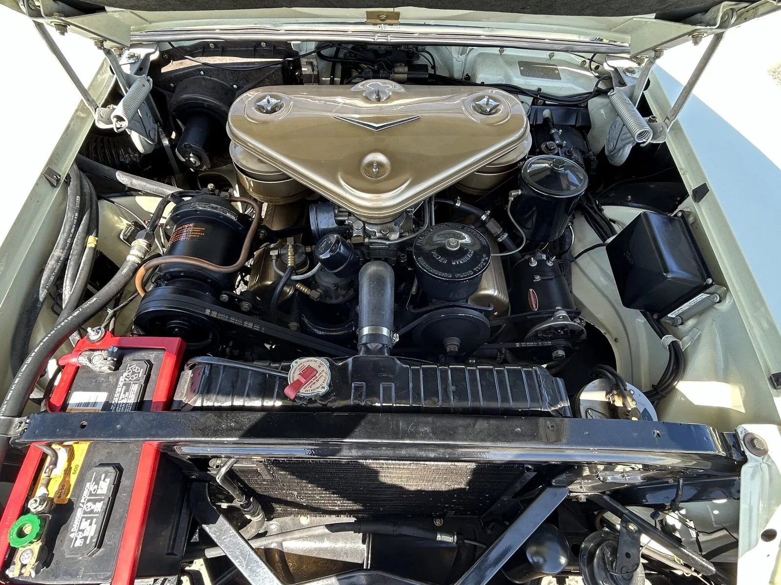 The 365ci V8 was overhauled during the 2008 refurbishment and features twin four-barrel carburetors as well as a gold-painted ‘batwing’ air cleaner and valve covers. Output was factory rated at 325 horsepower. Power is sent to the rear wheels via a four-speed automatic transmission.
