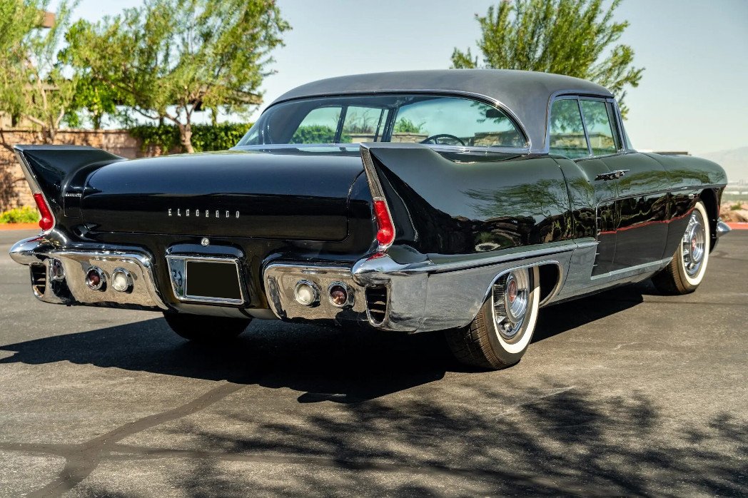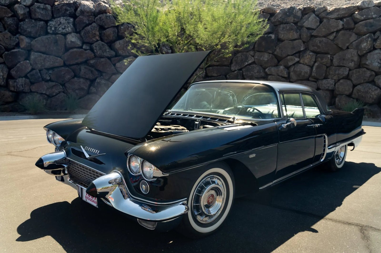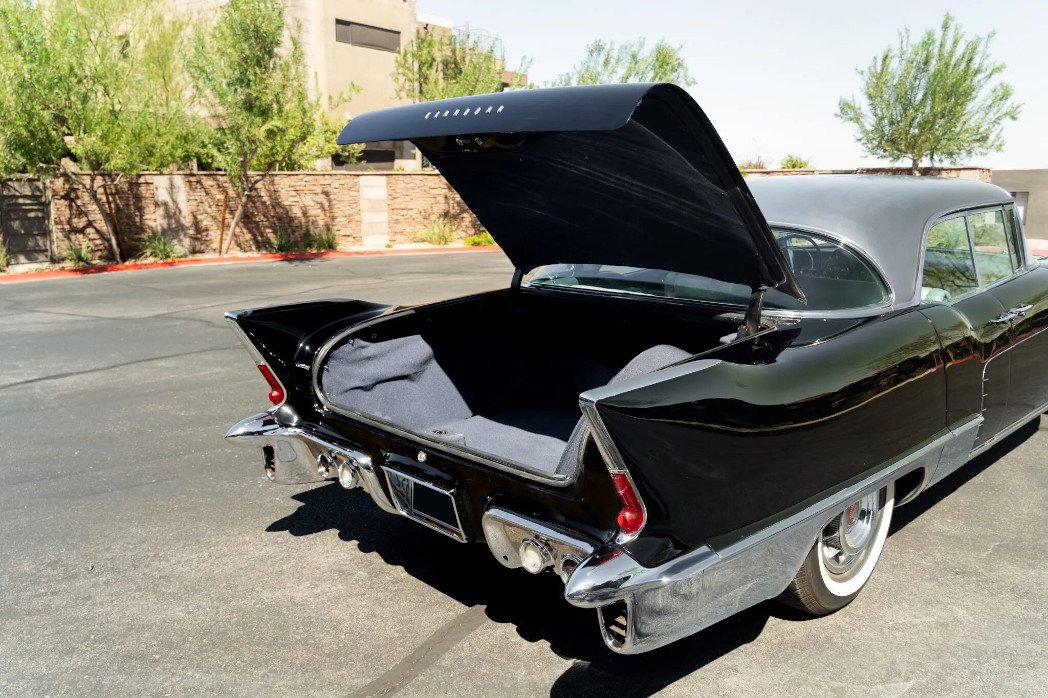 This 1957 Cadillac Eldorado Brougham hardtop sedan is one of 400 examples produced for the model year, and it is powered by a supercharged 4.4-liter Northstar V8 have been sourced from a late-model Cadillac XLR-V and paired with a replacement six-speed automatic transmission. Features include a stainless-steel roof panel, aluminum wheels, whitewall tires, bumper guards, power windows, power steering, air conditioning, a push-button radio, and an Autronic Eye headlight dimmer.