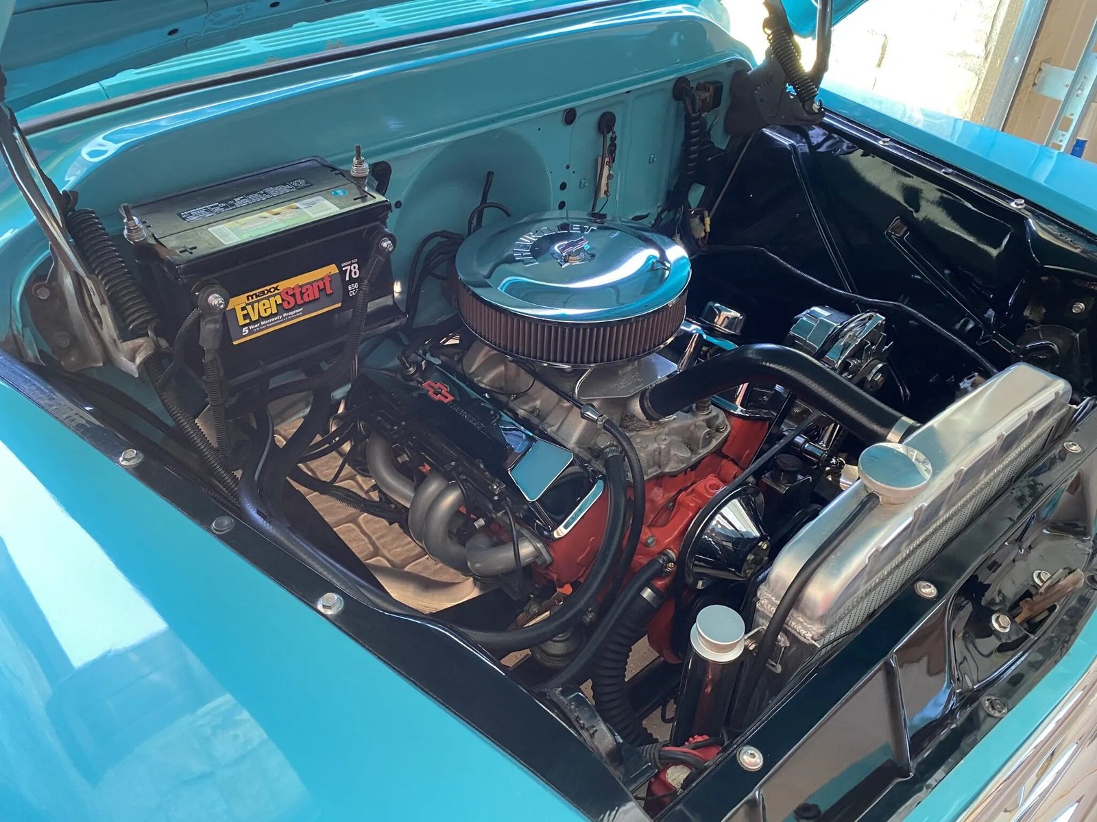 The 355ci V8 feature the following: Cast iron four-bolt main block that was decked, bored, honed, align-bored, and balanced, Ross pistons linked to reconditioned stock rods, Wes King “camelback” cylinder heads, Stainless steel valves, Edelbrock Performer RPM intake manifold, Holley 750cfm DP carburetor, MSD coil/ACCEL distributor