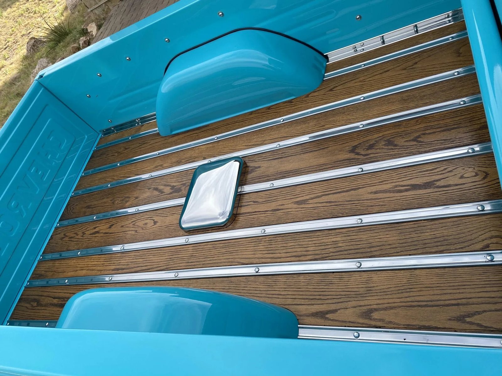 The frame was also refinished, and a pair of wheeltubs sourced from a 1982 Fleetside were integrated into the wood-lined bed.