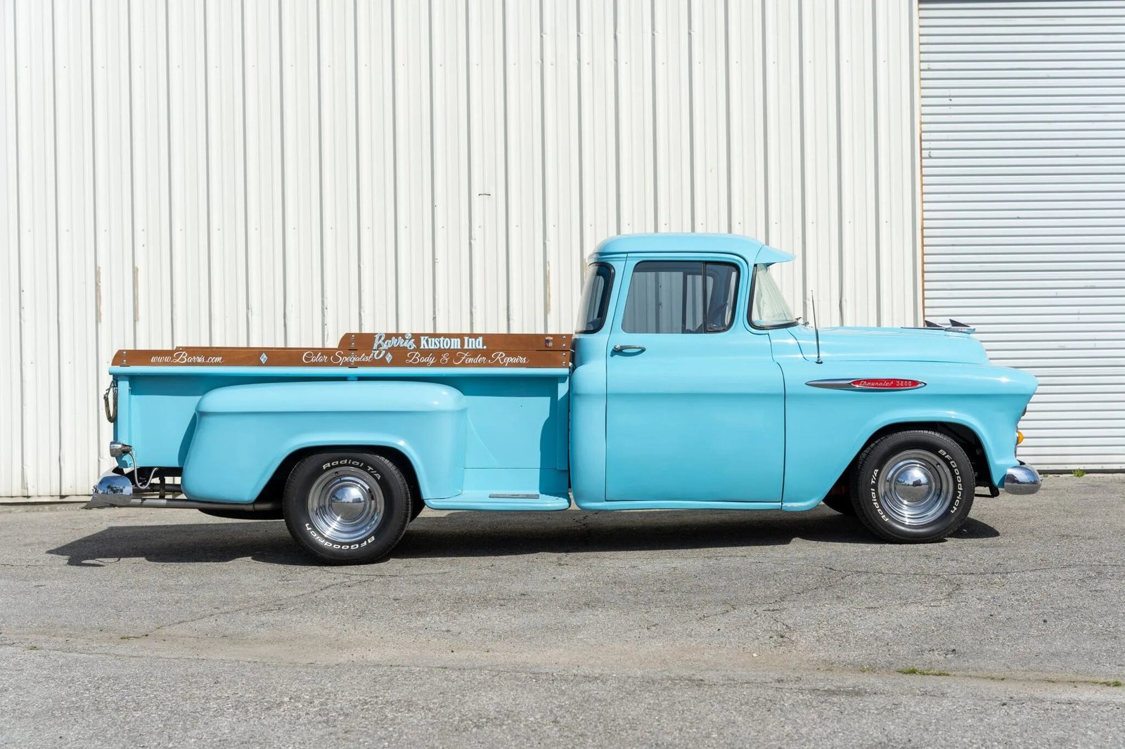 Chrome smoothie-style 15″ wheels wear BFGoodrich Radial T/A white-letter tires measuring 245/60 up front and 275/60 out back.