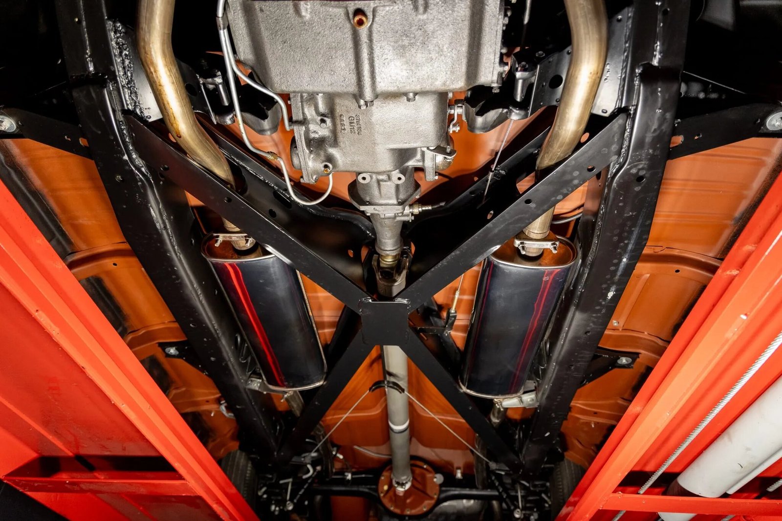 Power is sent to the rear wheels through a two-speed Powerglide automatic transmission. The car is equipped with a dual exhaust system.