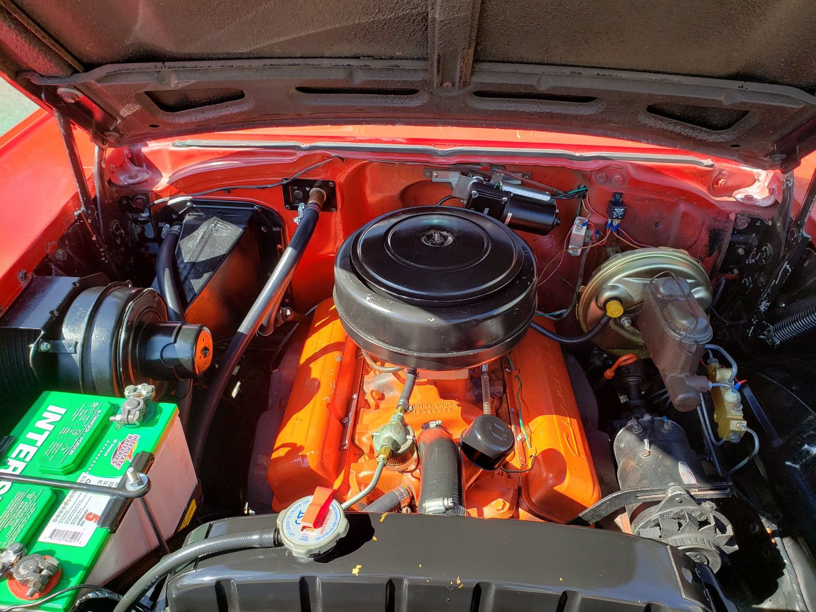 Wearing corporate Chevy Orange enamel, the 283ci V8 looks right at home.