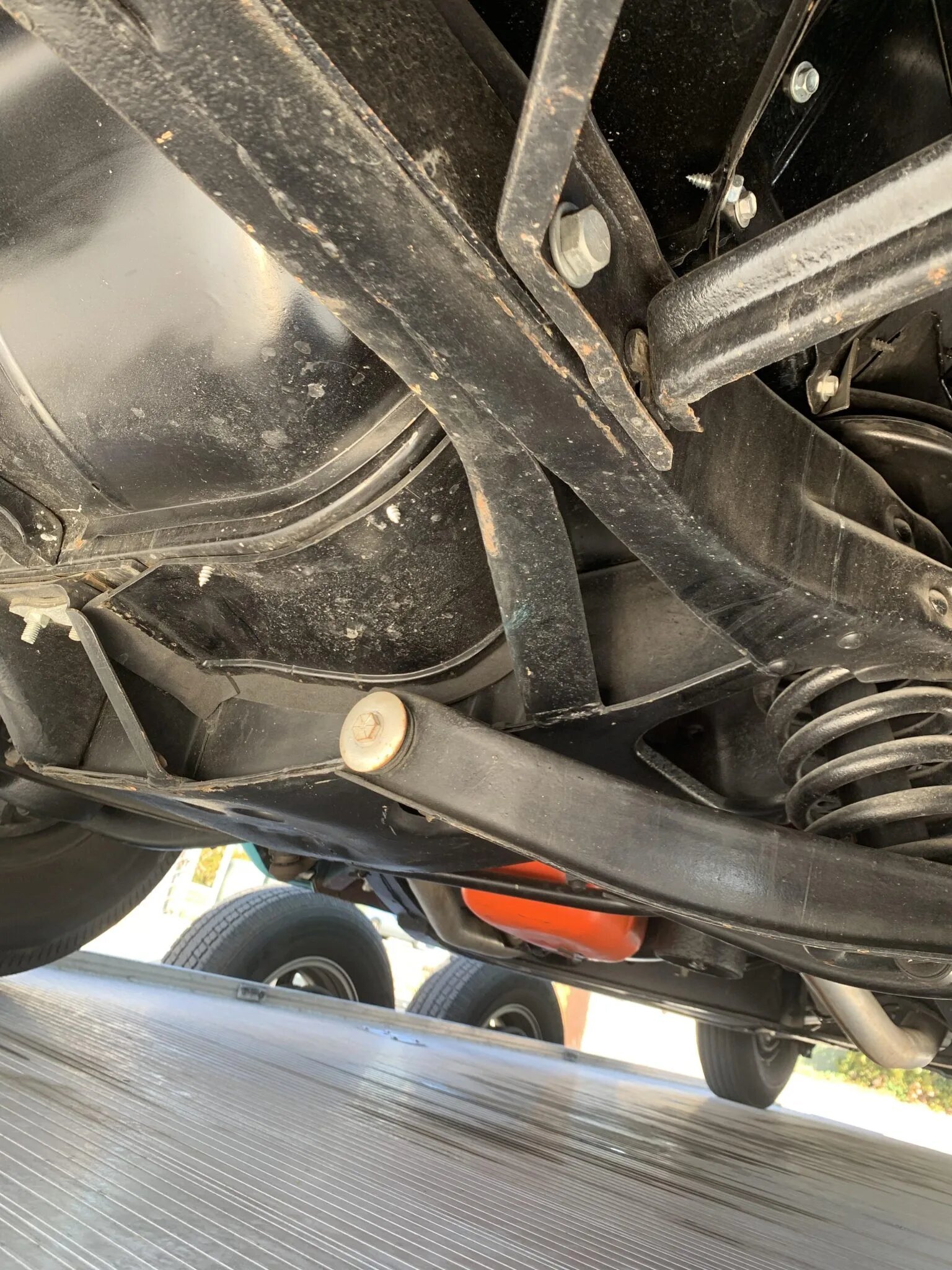 Amenities consist of a locking glove box, a passenger-side clock, a tissue box, a heater and defroster, lap belts, floor mats, and a Wonder Bar push-button radio that has been modified with Bluetooth capability.