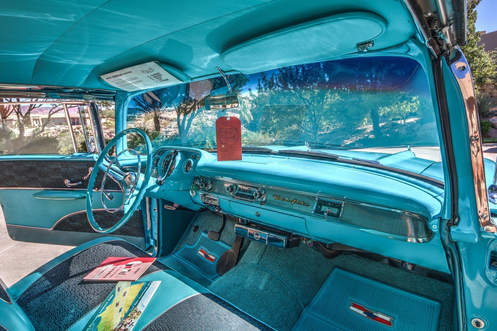 Power is from a rebuilt 283ci V8 equipped with Power Pack cylinder heads and paired with a Powerglide automatic transmission.
