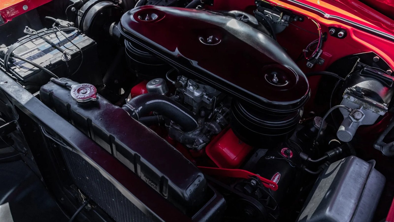 Work included rebuilding the carburetors and replacing the thermostat, fuel pump, ignition, and spark plugs.