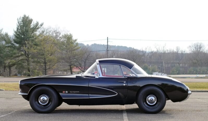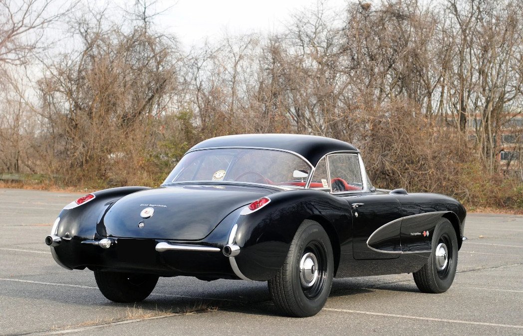 This 1957 Chevrolet Corvette is finished in black with matching coves over red and powered by a 283ci V8 paired with a replacement four-speed manual transmission and a Positraction rear axle.