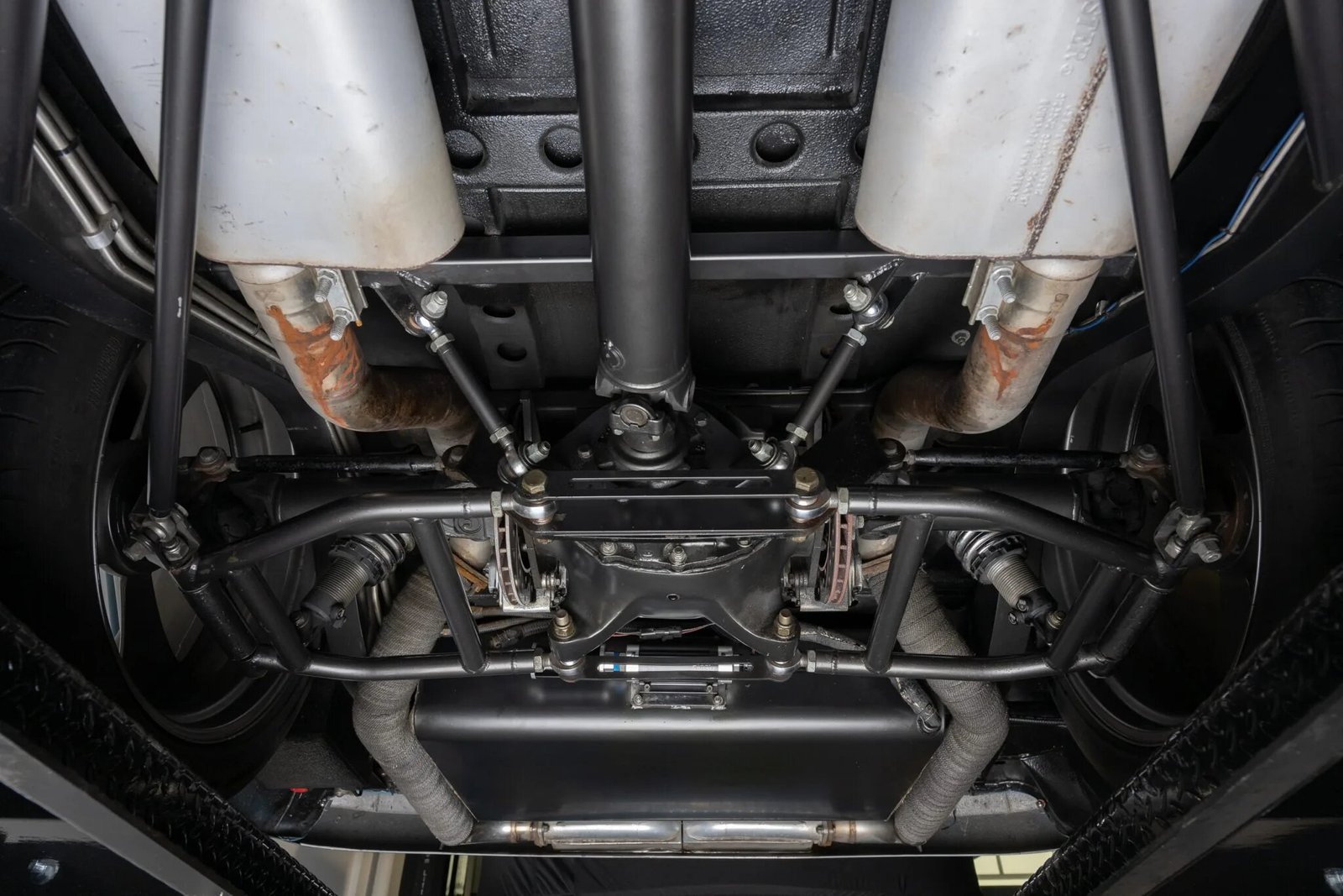 The truck features a custom Roadster Shop chassis with Corvette C6 front suspension, Afco front coilovers, a Heidts independent rear suspension, QA1 rear coilovers, power steering, and an electronic anti-lock brake system.
