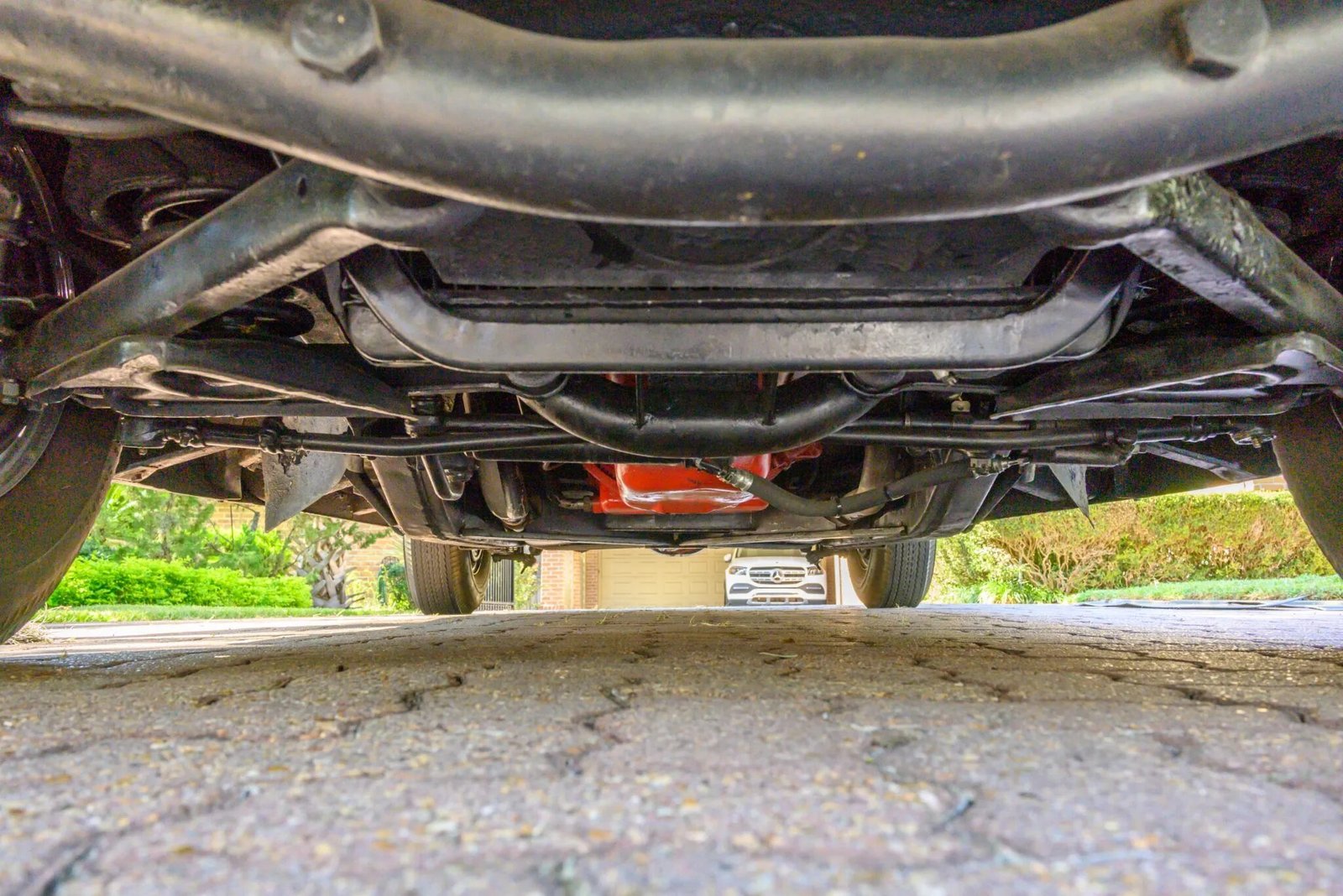 The 312ci V8 is equipped with a dual exhaust system, a polished air cleaner, and finned valve covers. The starter motor and solenoid were replaced along with the carburetor and oil pan gasket in August 2020. Power is delivered to the rear wheels via a three-speed Ford-O-Matic automatic transmission that was overhauled and resealed in May 2021.