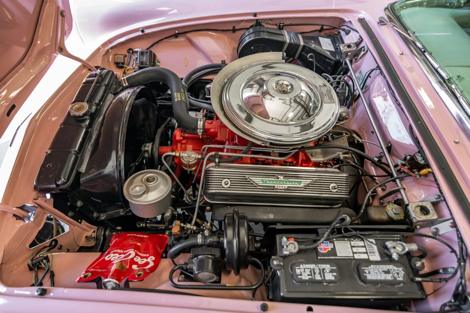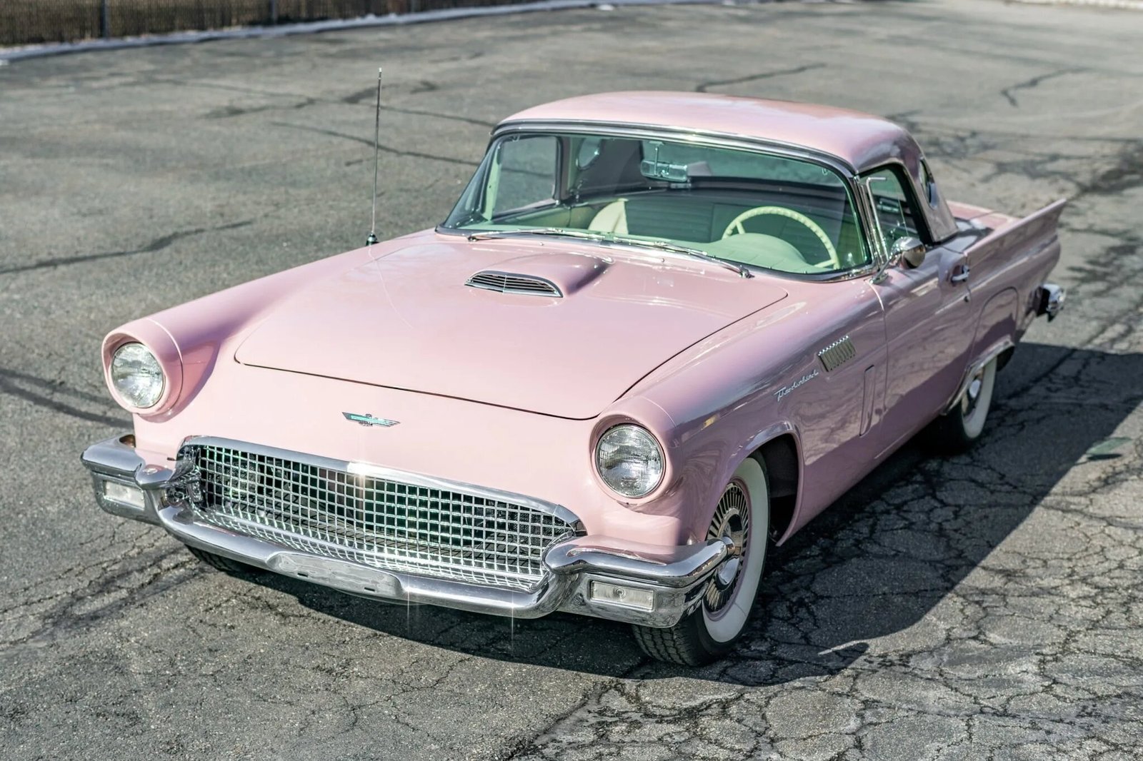 This 1957 Ford Thunderbird is finished in pink with a matching hardtop and is powered by a 312ci V8 paired with a three-speed automatic transmission.