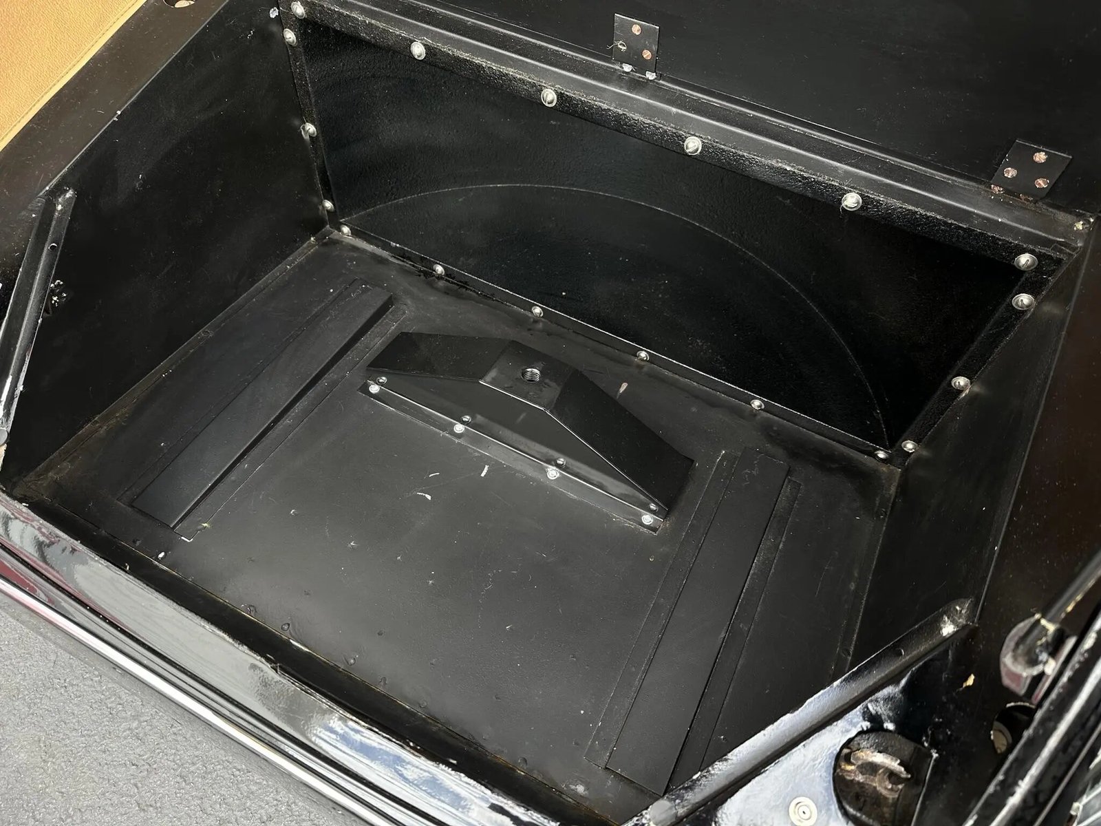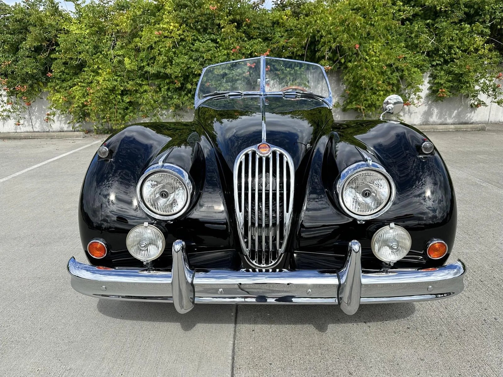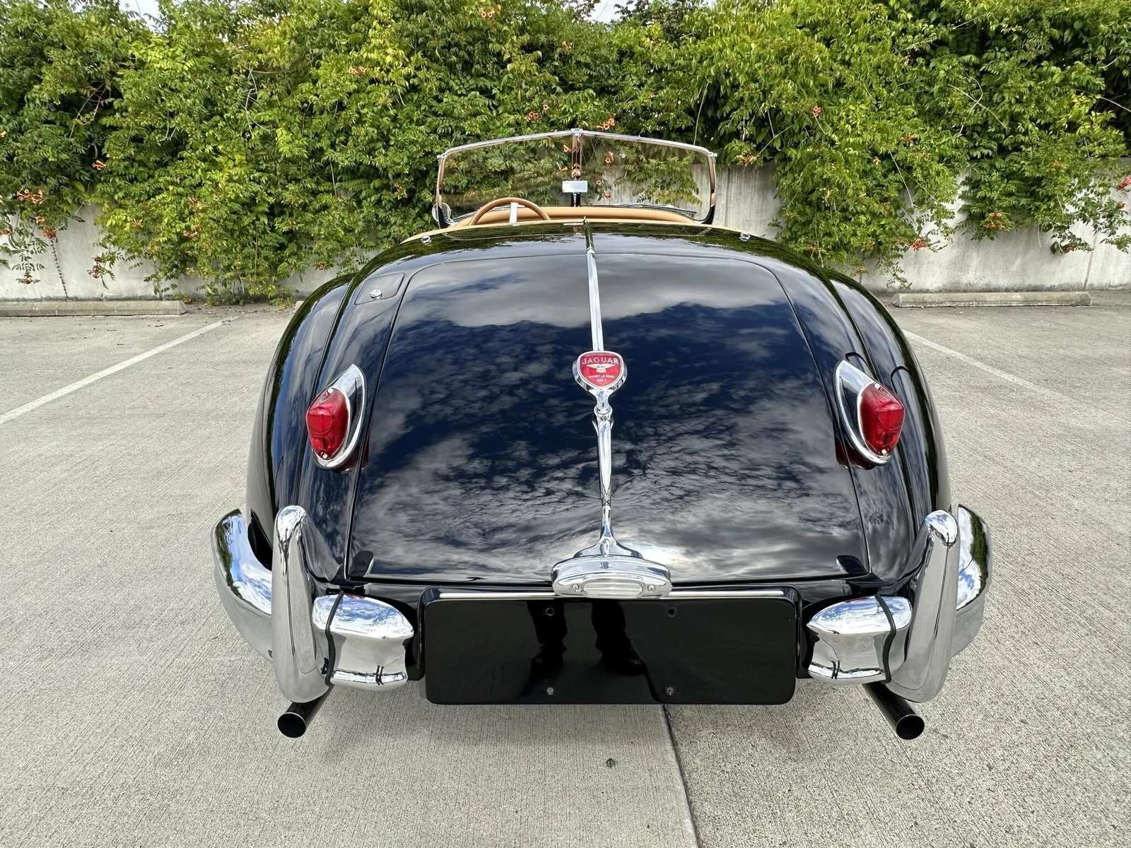 The car was finished from the factory in Cream and was repainted in black during the aforementioned refurbishment. Details include a black soft top, Lucas front driving lamps, and a two-piece windshield. A black tonneau cover and a pair of removable side curtains will accompany the vehicle.
