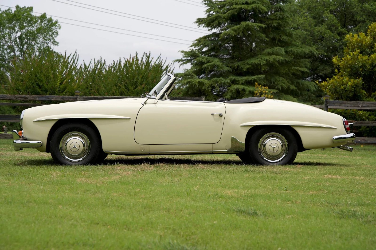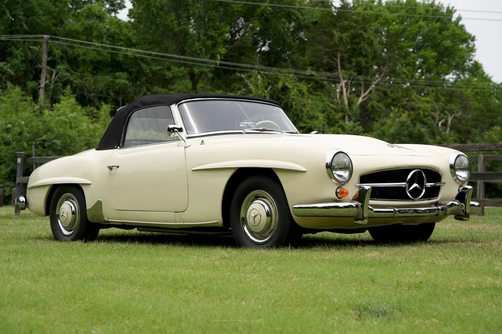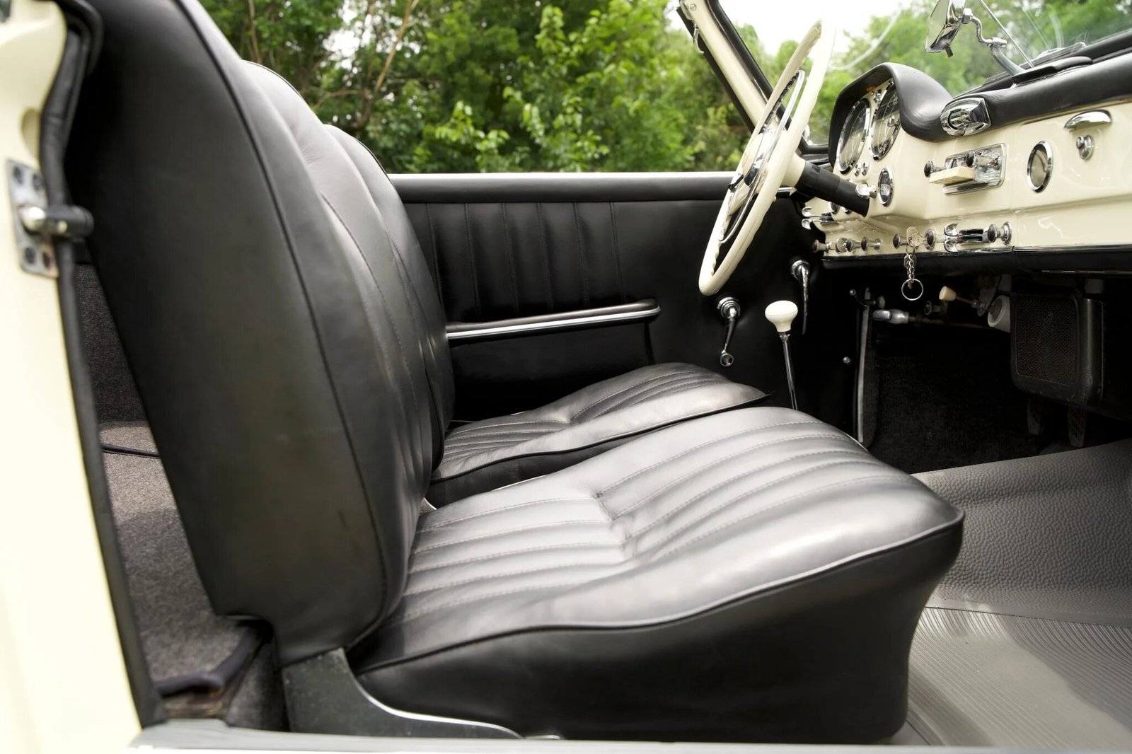 The car is finished in ivory over black leather and is powered by a 1.9-liter inline-four paired with a four-speed manual transmission.