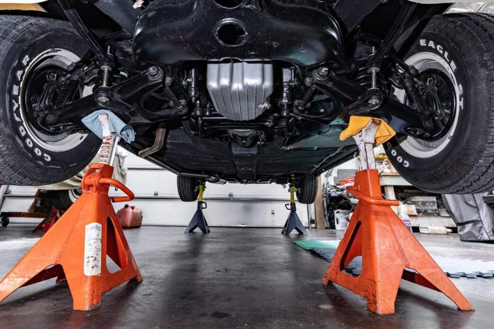The subframe mounts, control arm bump stops, and idler arm bushings were replaced in 1998, at which time Bilstein shocks and a heavy-duty sway bar have been installed along with a rebuilt steering box and axles.