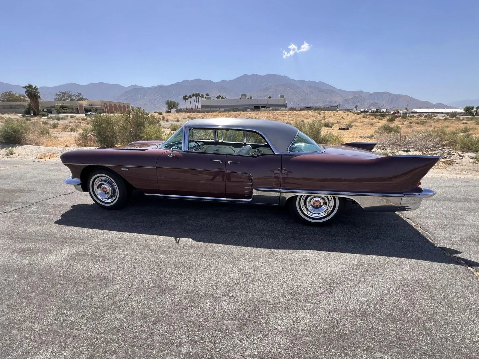 Deriving its styling from the Orleans and Park Avenue Motorama concepts of 1953 and 1954, the Brougham was hand-assembled by Cadillac when new. This example is finished in Maharani Maroon (152) and features quad headlights, “Dagmar” bumper guards, a brushed stainless steel pillarless roof, rear coach doors, and a power-operated trunk.