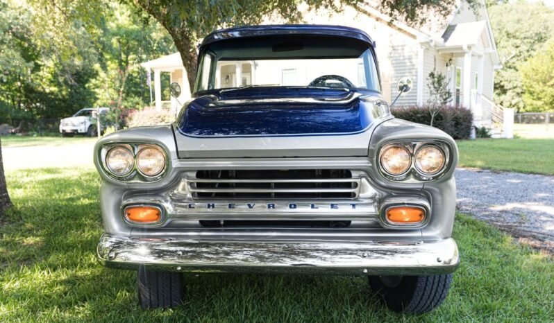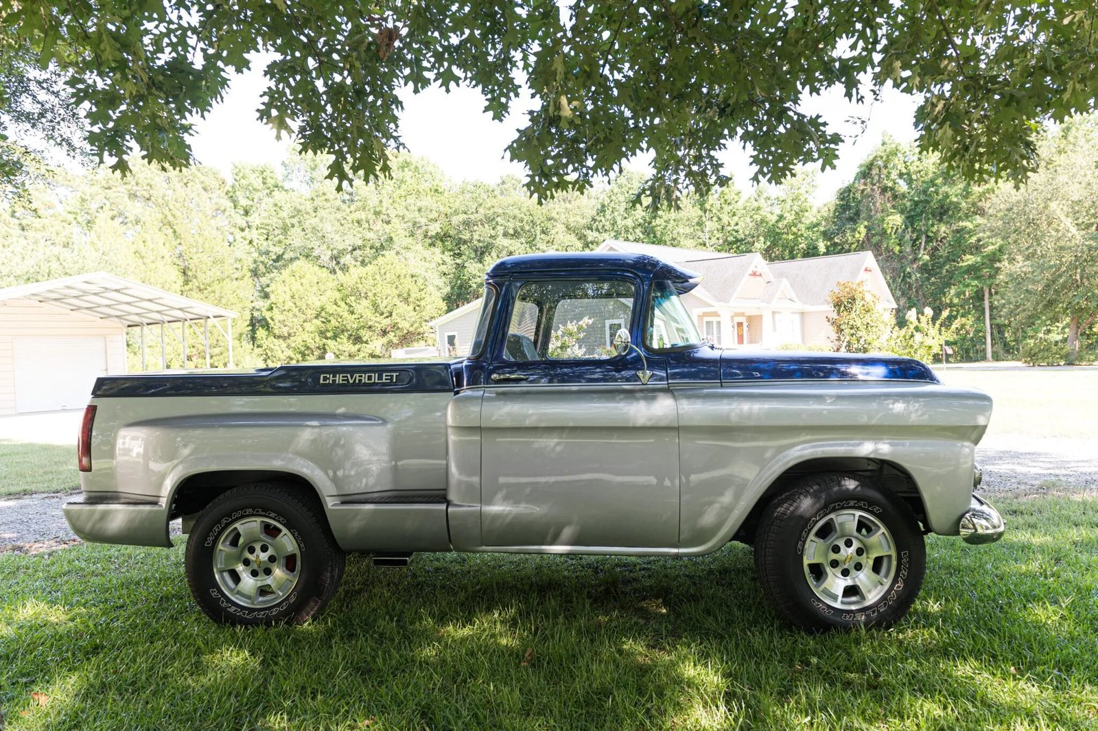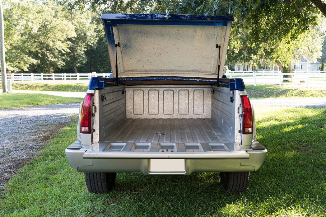Originally finished in Dawn Blue, the truck is said to have been fitted with a 1991 Chevrolet Silverado-sourced stepside bed and repainted in Laser Blue Metallic and Silver Ice.