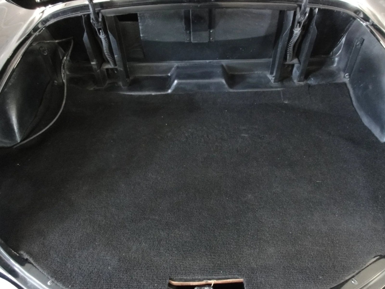 The cabin features bucket seats upholstered in black vinyl along with a matching dashboard topper, carpets, and door panels.