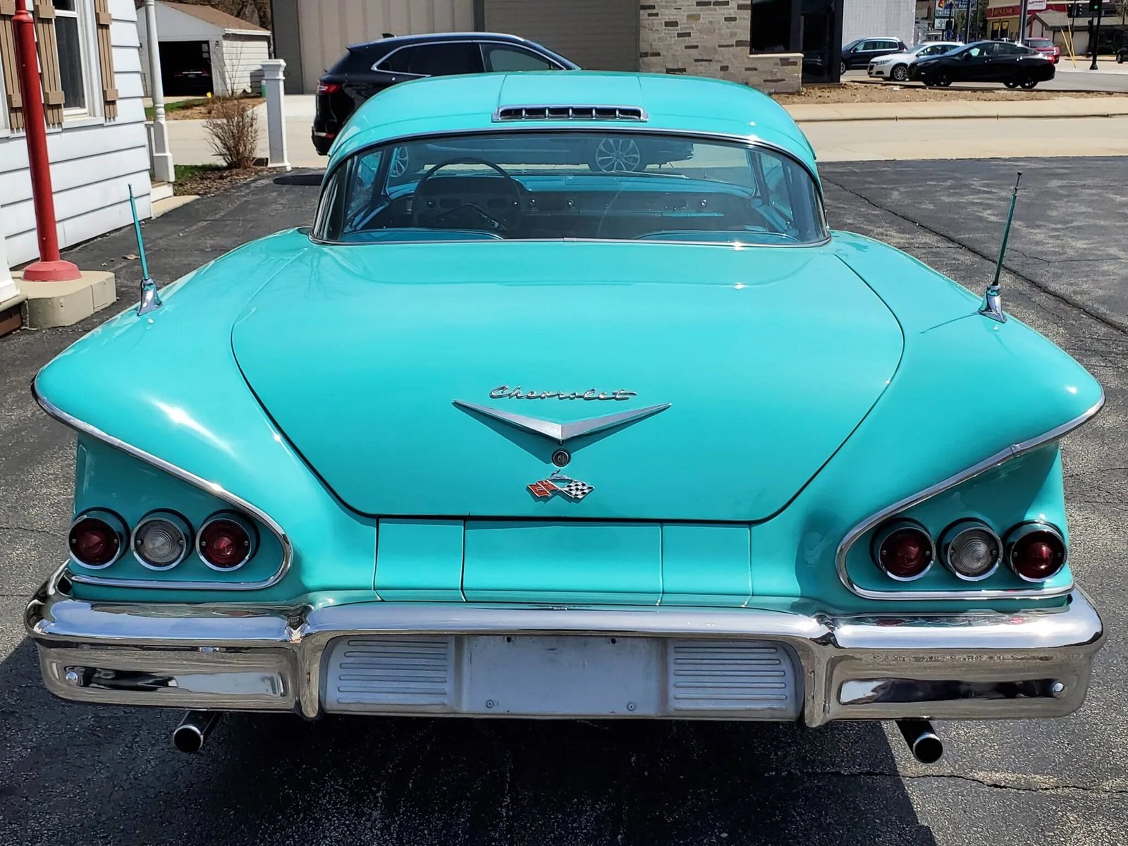 Additional features include quad headlamps, dual antennas, fender wind splits, faux vents, a curved windshield and back glass, and triple taillights on both sides.