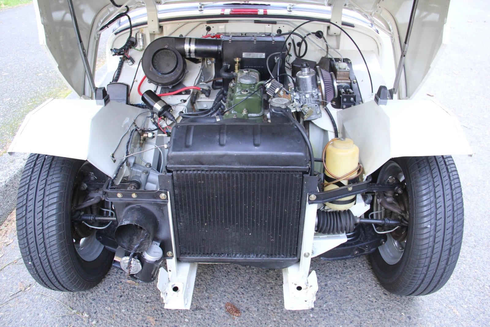 The 948 cc A-series inline-four engine was over-bored by 0.04″ when the the previous owner reportedly rebuilt the engine.