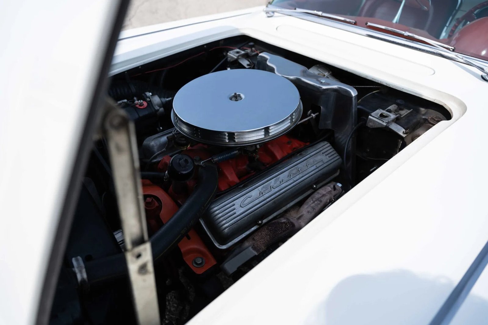 The 283ci V8 sends power to the rear wheels via a four-speed manual transmission.