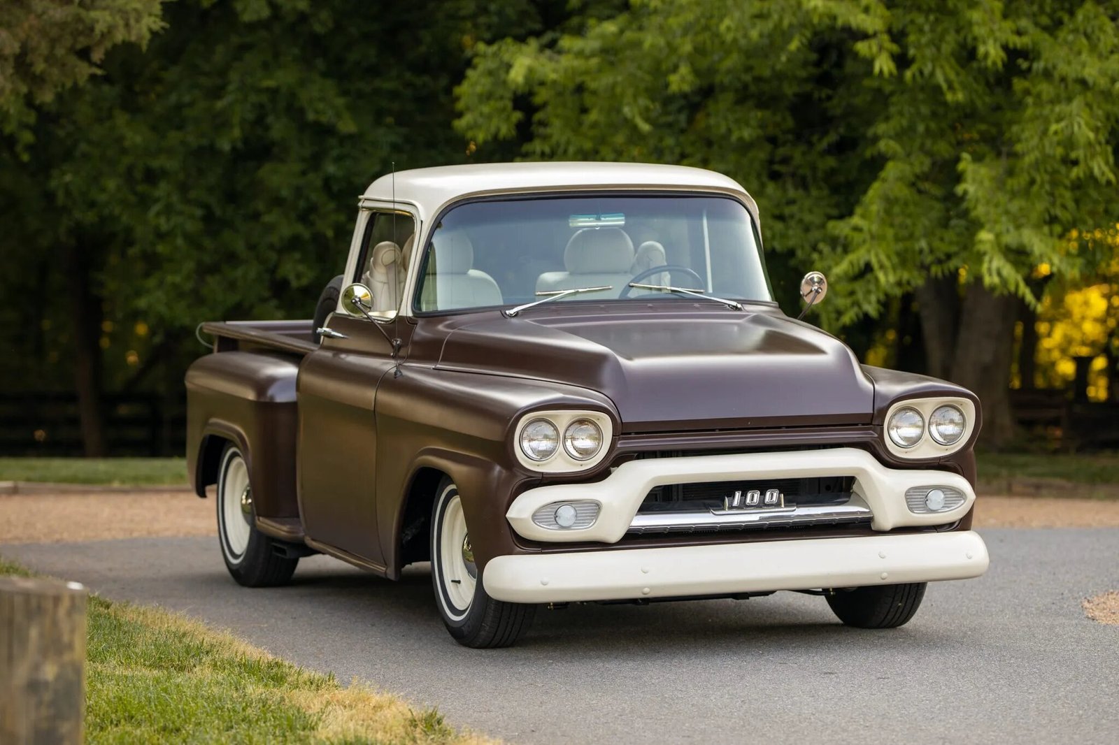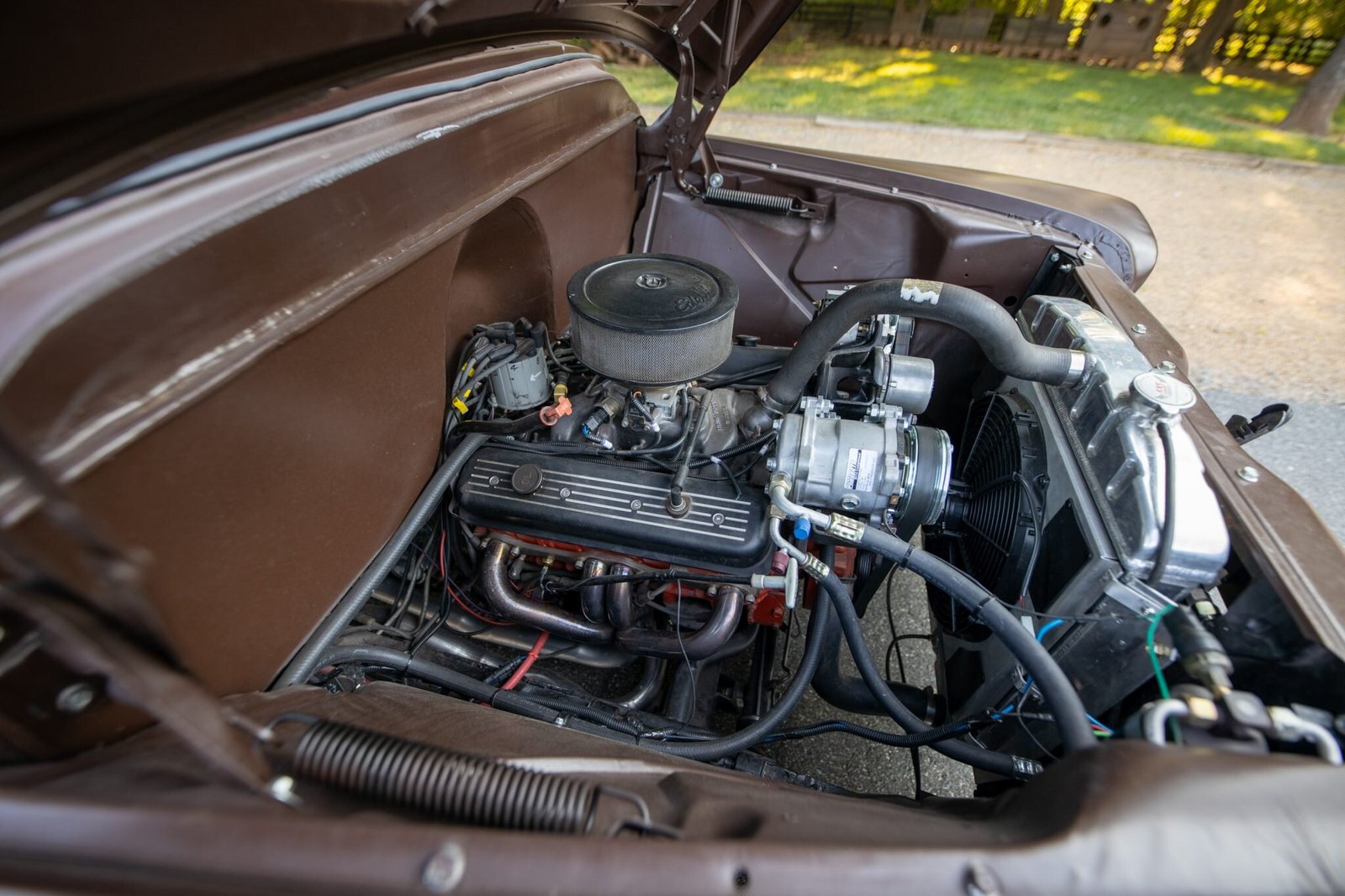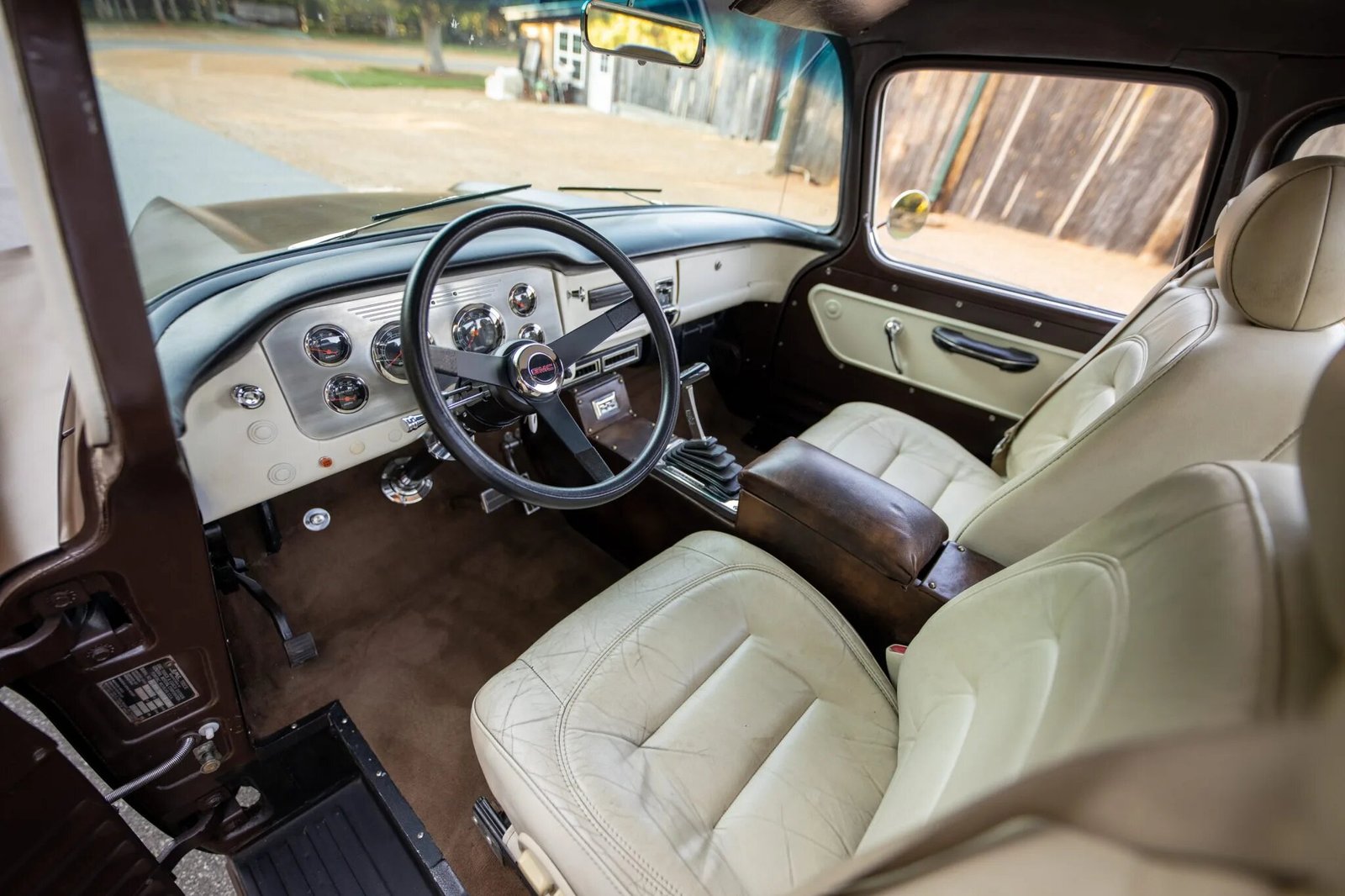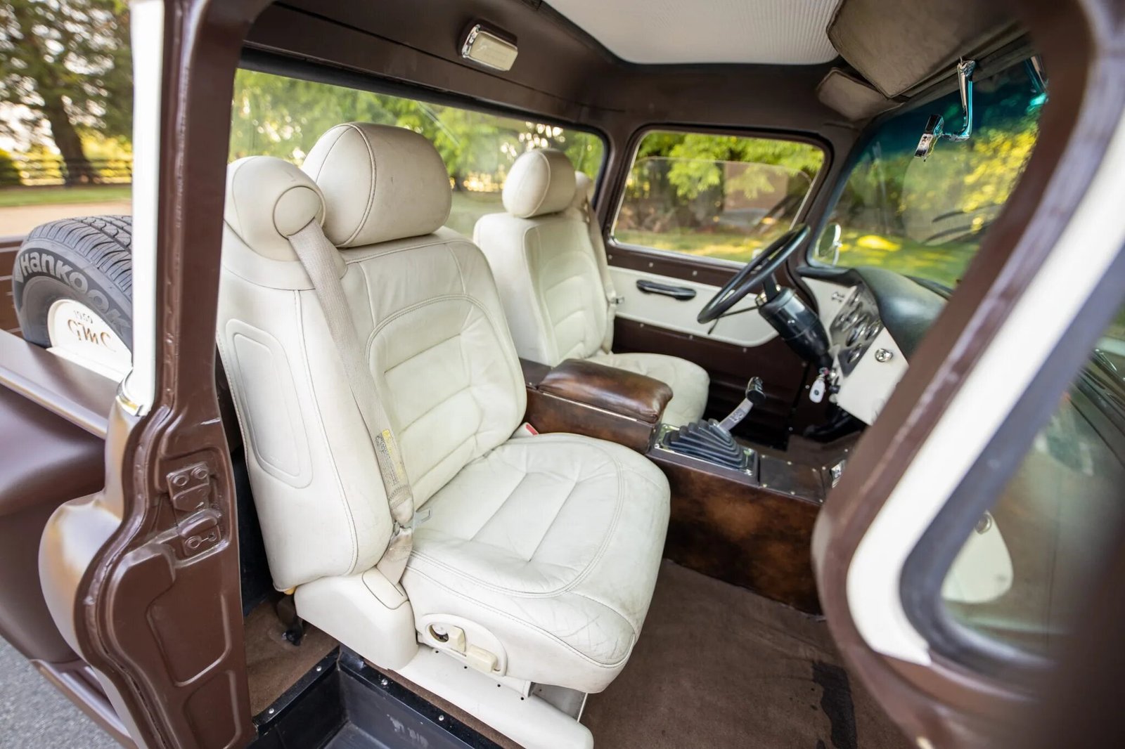 The bodywork was repaired and the exterior was refinished in satin brown with cream accents, Cadillac-sourced seats with cream leather upholstery were fitted, and a 5.7-liter Vortec V8 engine, a four-speed automatic transmission, and a Positraction rear end were all installed.