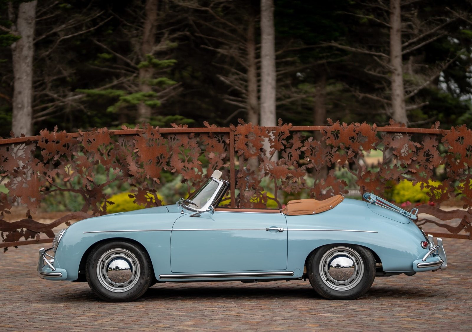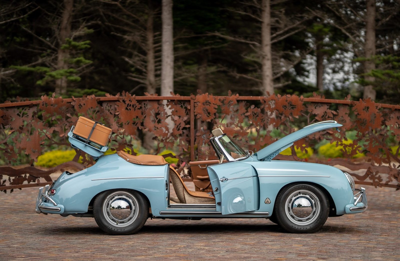 This 1959 Porsche 356A is one of 1,330 Convertible D models built during a single-year production run and was distributed new in the US by Hoffman Motor Car Co. A restoration was carried out between 1989 and 1990 and included a repaint, re-plating the chrome trim, undercoating the chassis, reupholstering the interior, and replacing the transaxle case and convertible top.