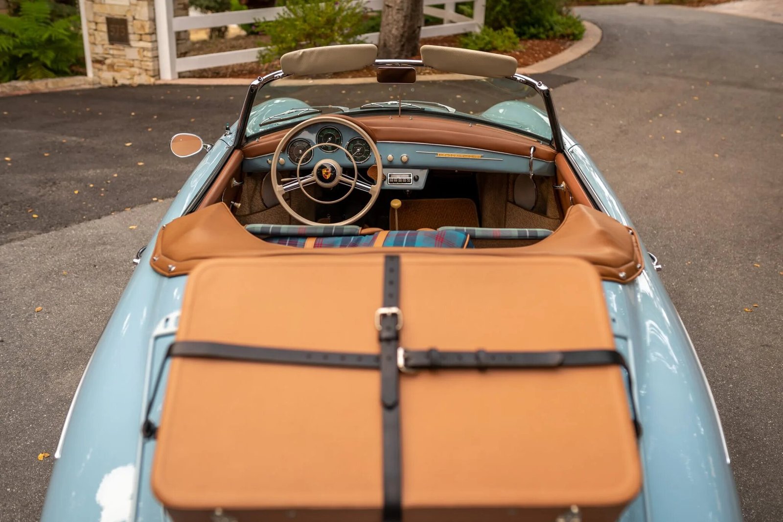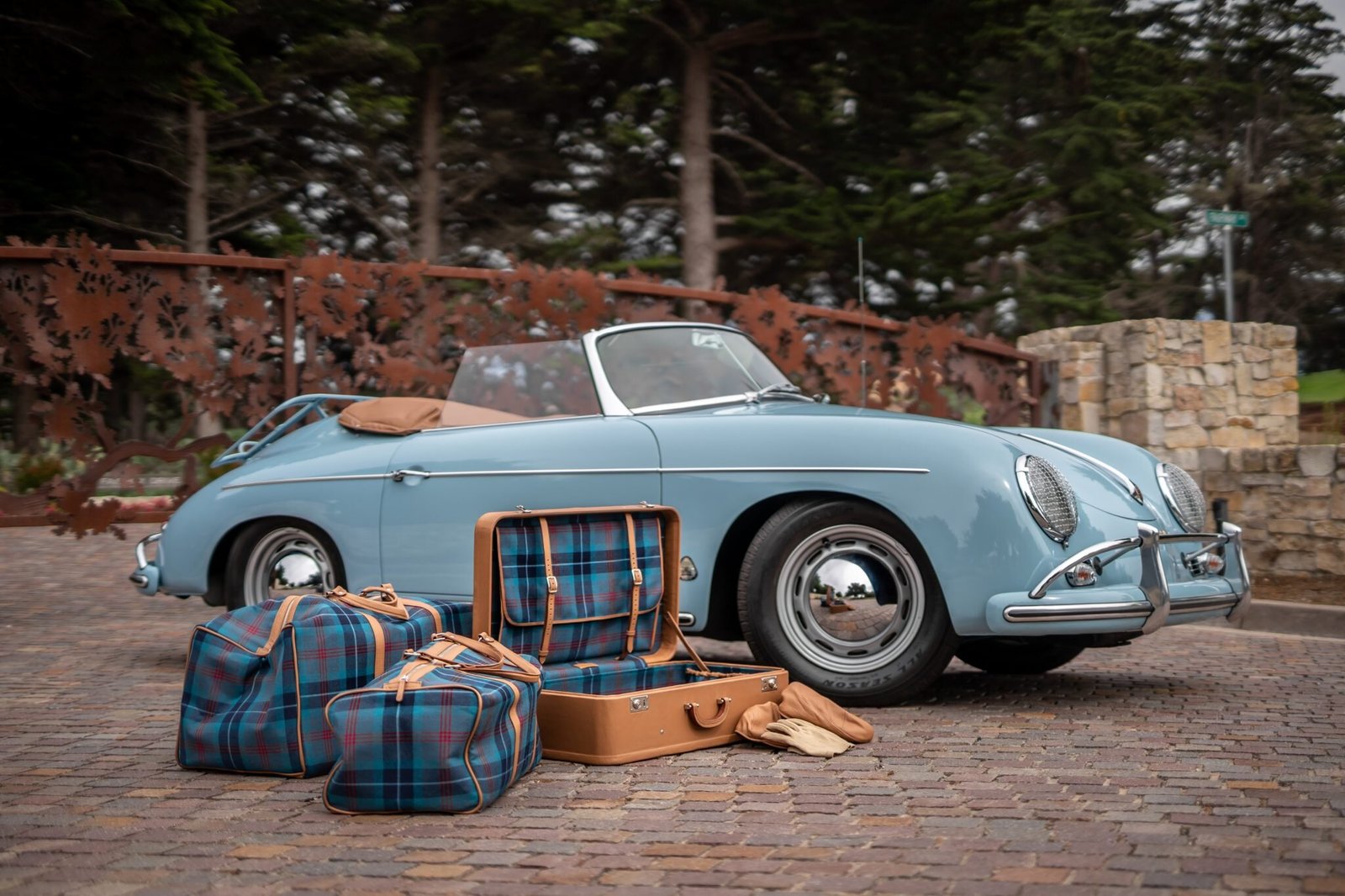 A set of custom luggage, matched to the car’s interior, is included in the sale.