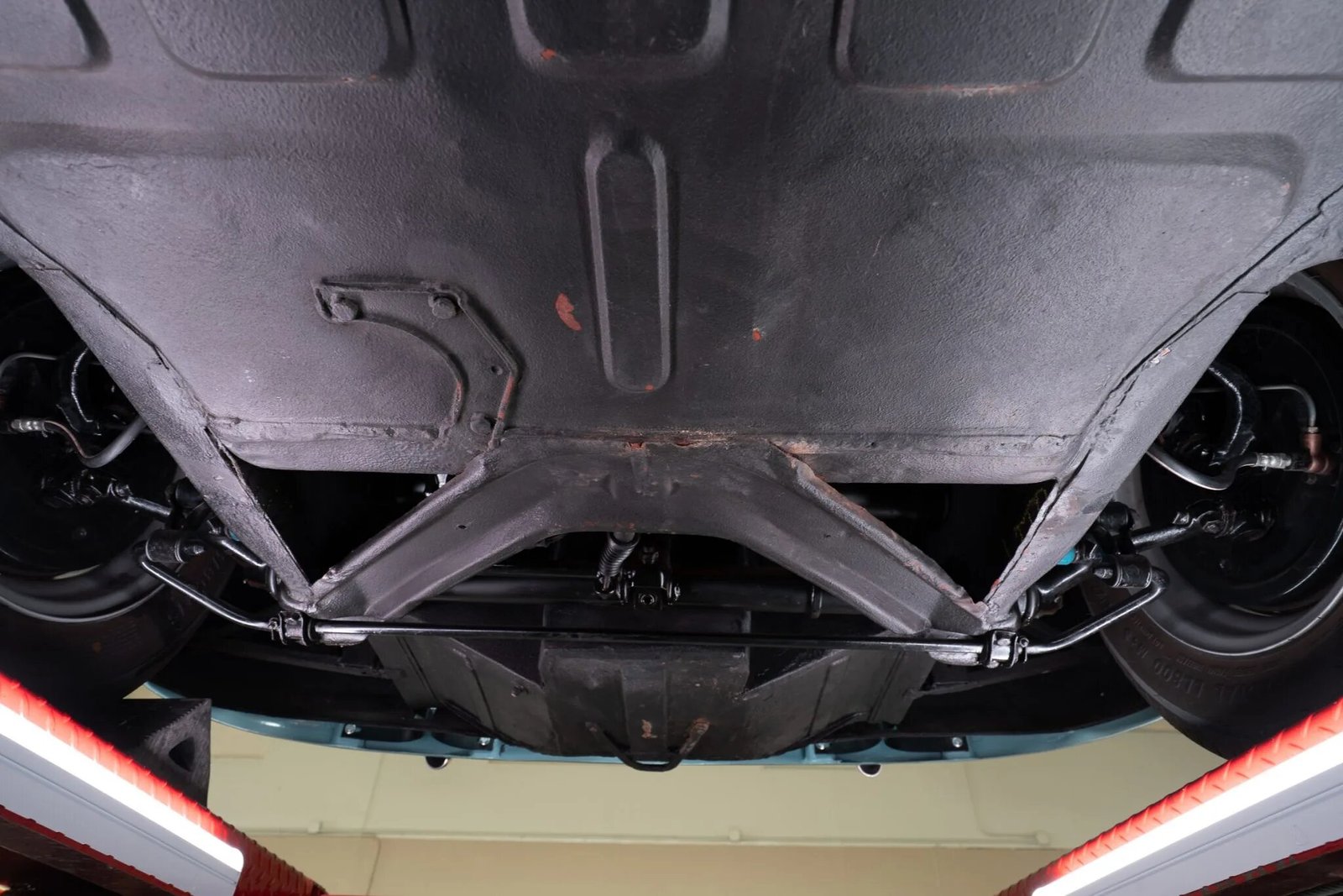 The car is equipped with torsion bars front and rear, along with finned drum brakes at all four corners.
