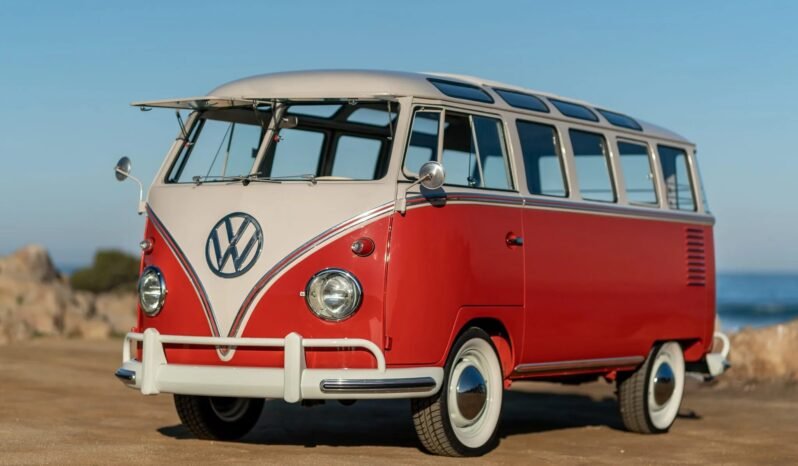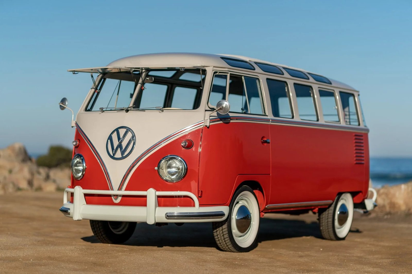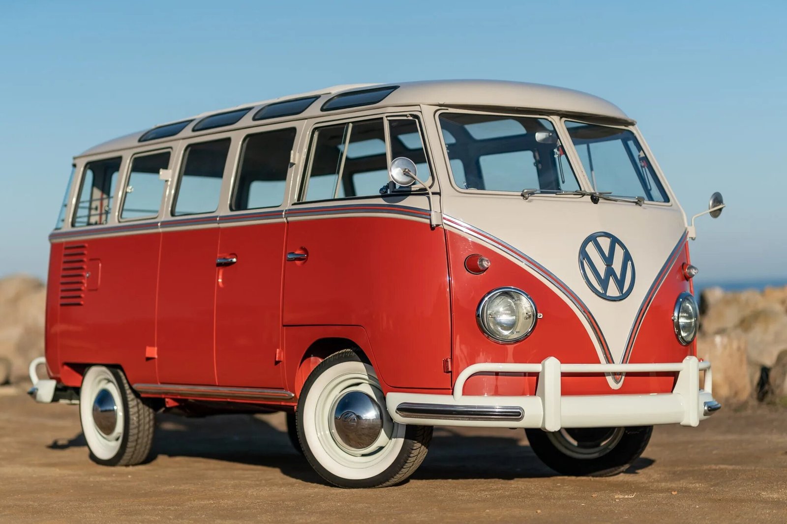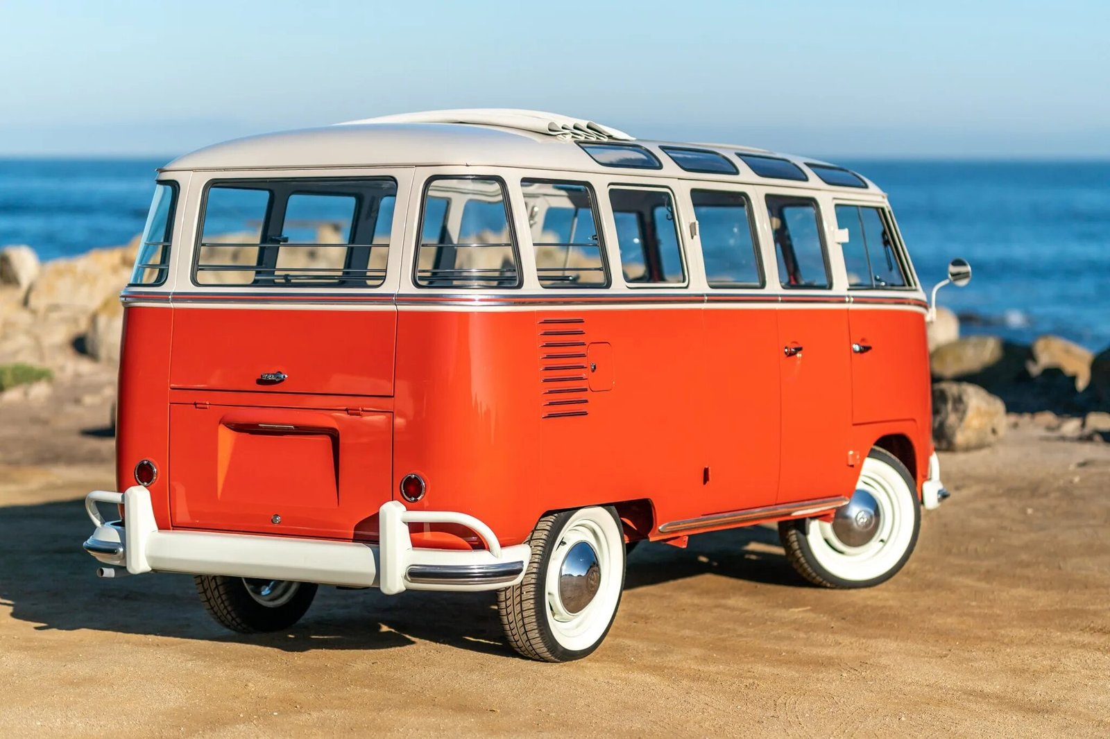 The bus received bodywork and a repaint in factory Beige Grey over Sealing Wax Red during the 2017 refurbishment and features a replacement white sliding canvas roof insert.