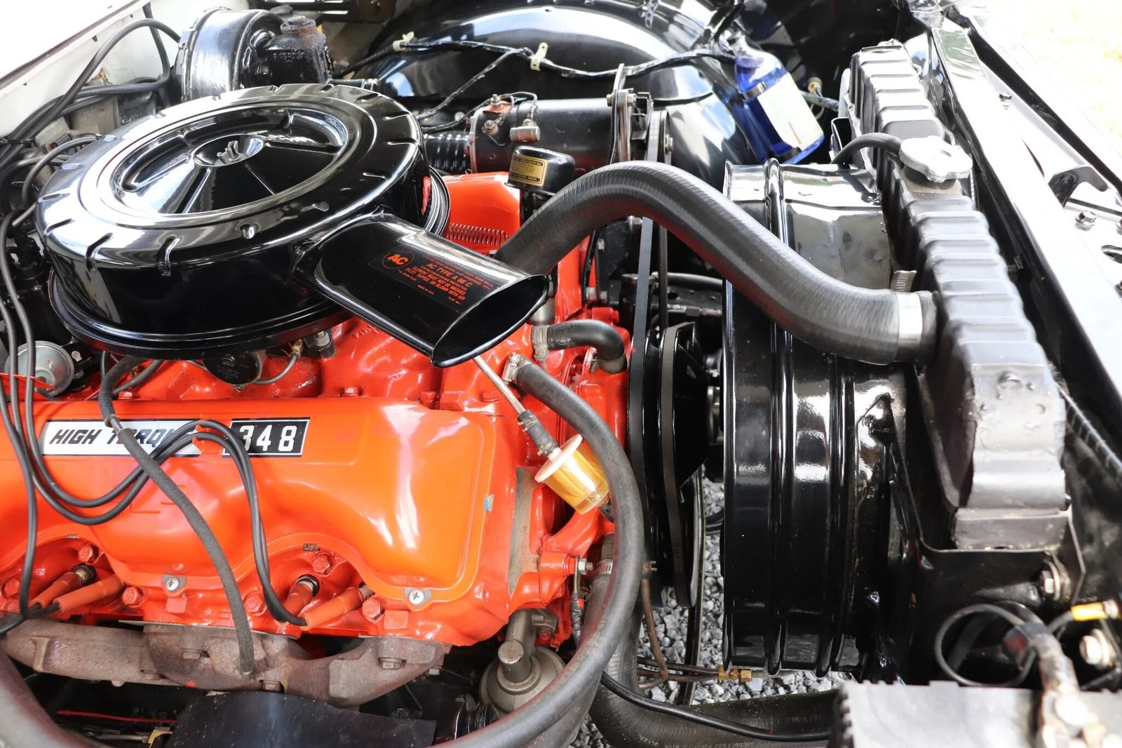 The 348ci V8 is fitted with a Carter four-barrel carburetor and sends power to the rear wheels through a two-speed Powerglide automatic transmission.
