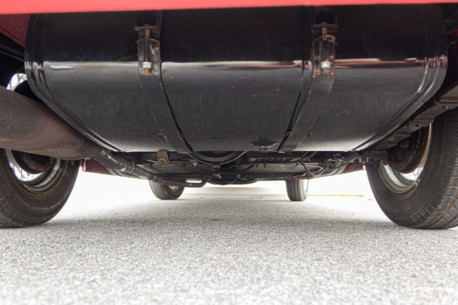 Painted 15” wire wheels are mounted with two-eared knock-off spinners and wear 165/80 Classic Radial LL800 tires.