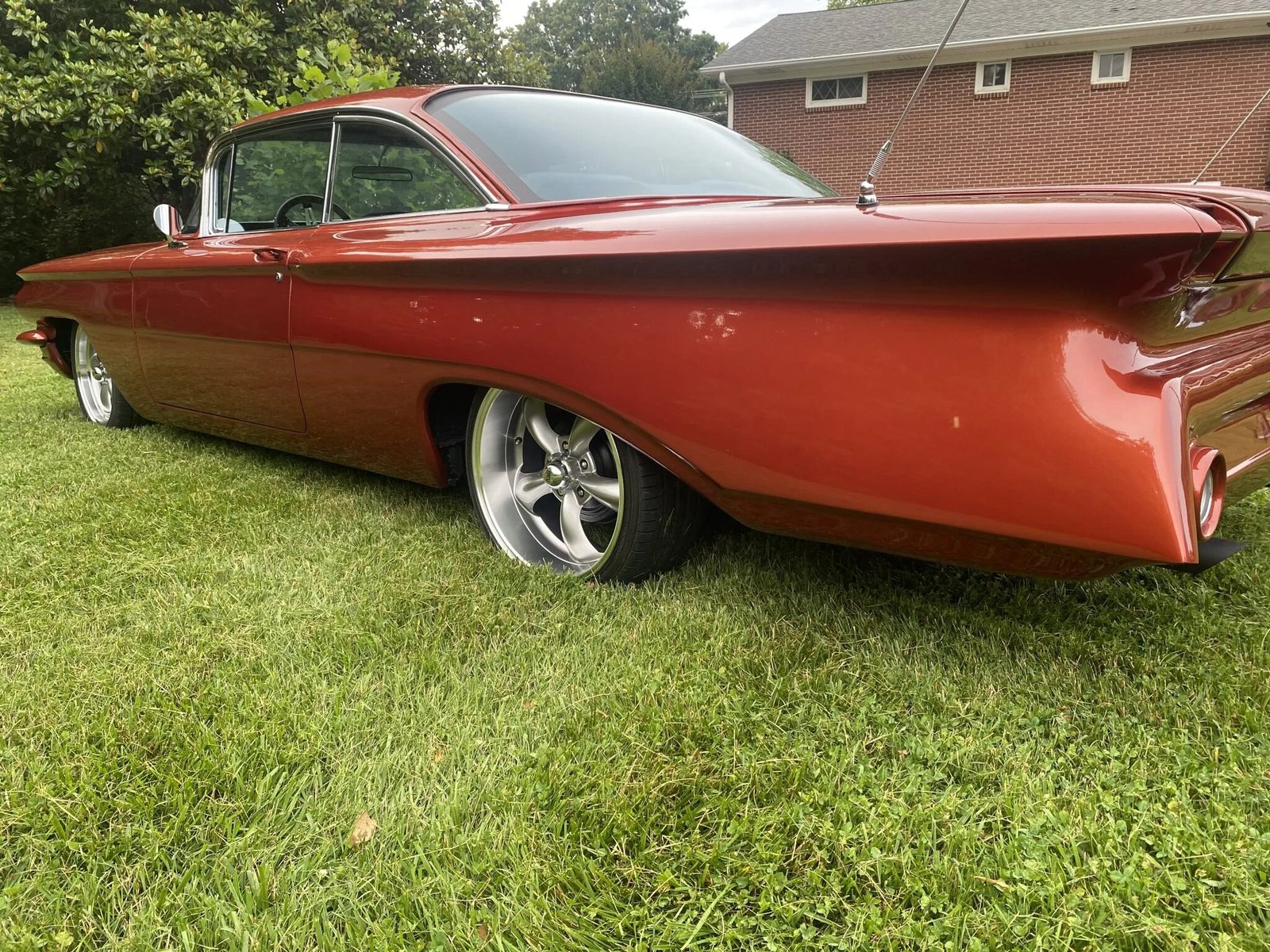 This 1960 Oldsmobile Super 88 is finished in orange over black and powered by a 425ci V8 paired with a Turbo 400 three-speed automatic transmission.