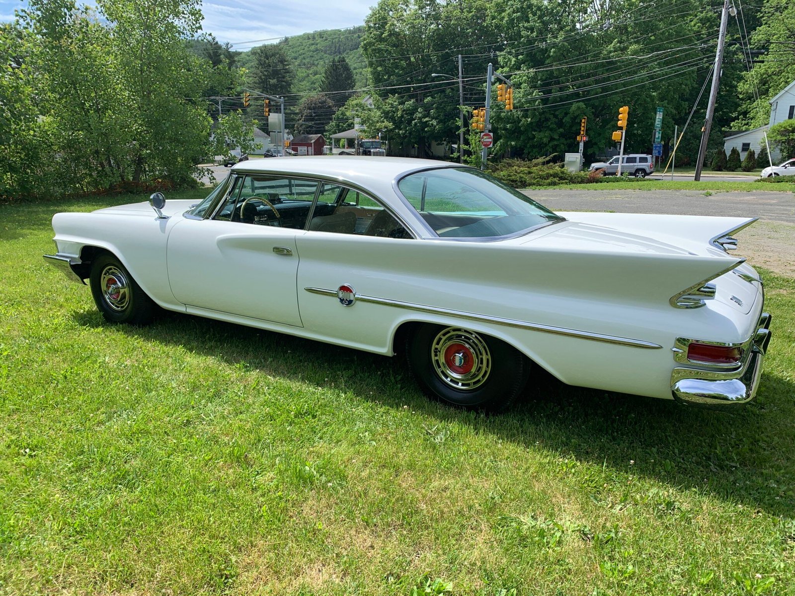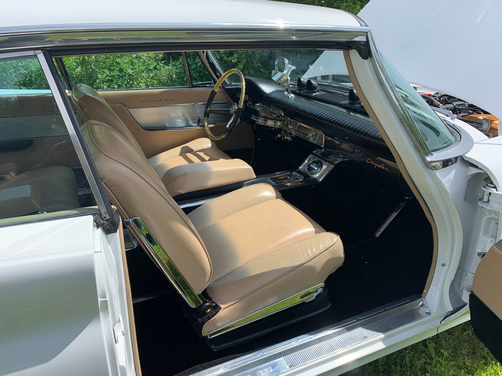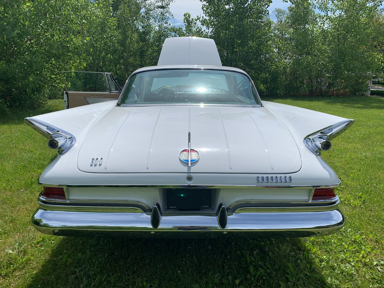 This 1961 Chrysler 300G coupe in finished in white over tan leather and comes from the last year of the finned letter-series Chryslers.