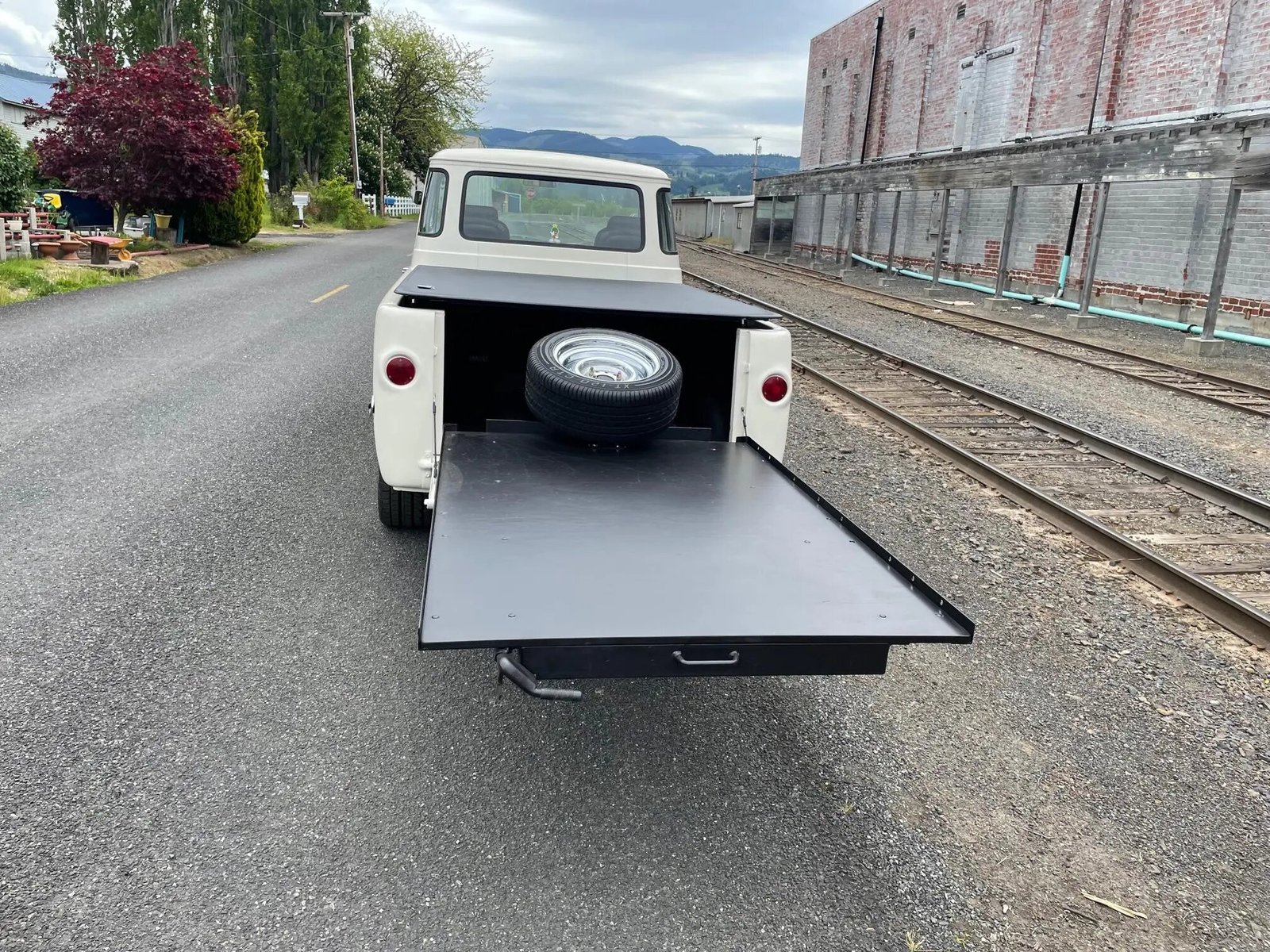 A spare wheel is mounted on a custom slide-out panel inside the bed, which is covered using a pop-up tonneau cover.