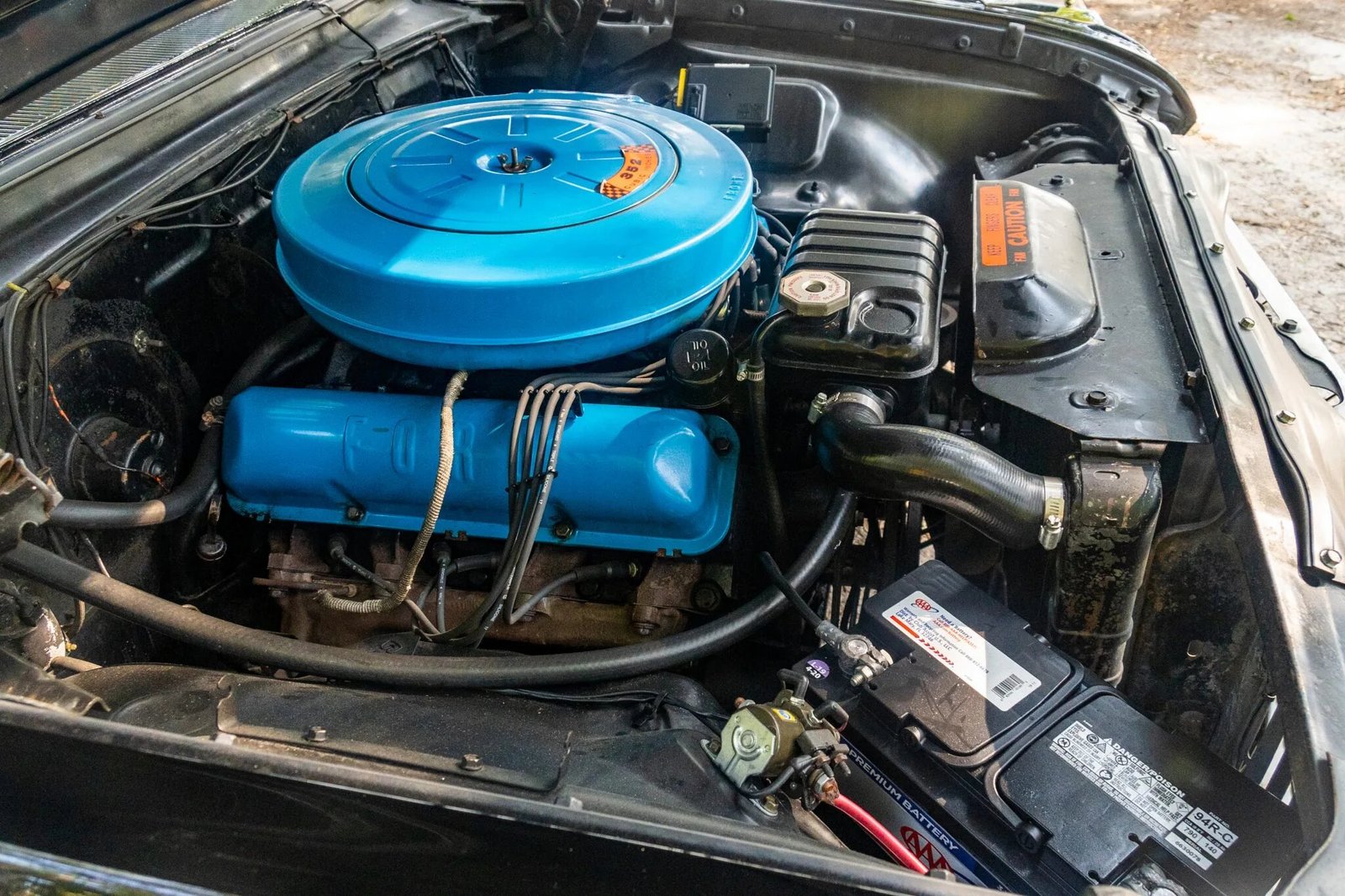 The X-code 352ci ‘Thunderbird Special’ V8 has been fitted with a four-barrel carburetor and an electronic ignition module, and power is sent to the rear wheels through a Cruise-O-Matic automatic transmission.