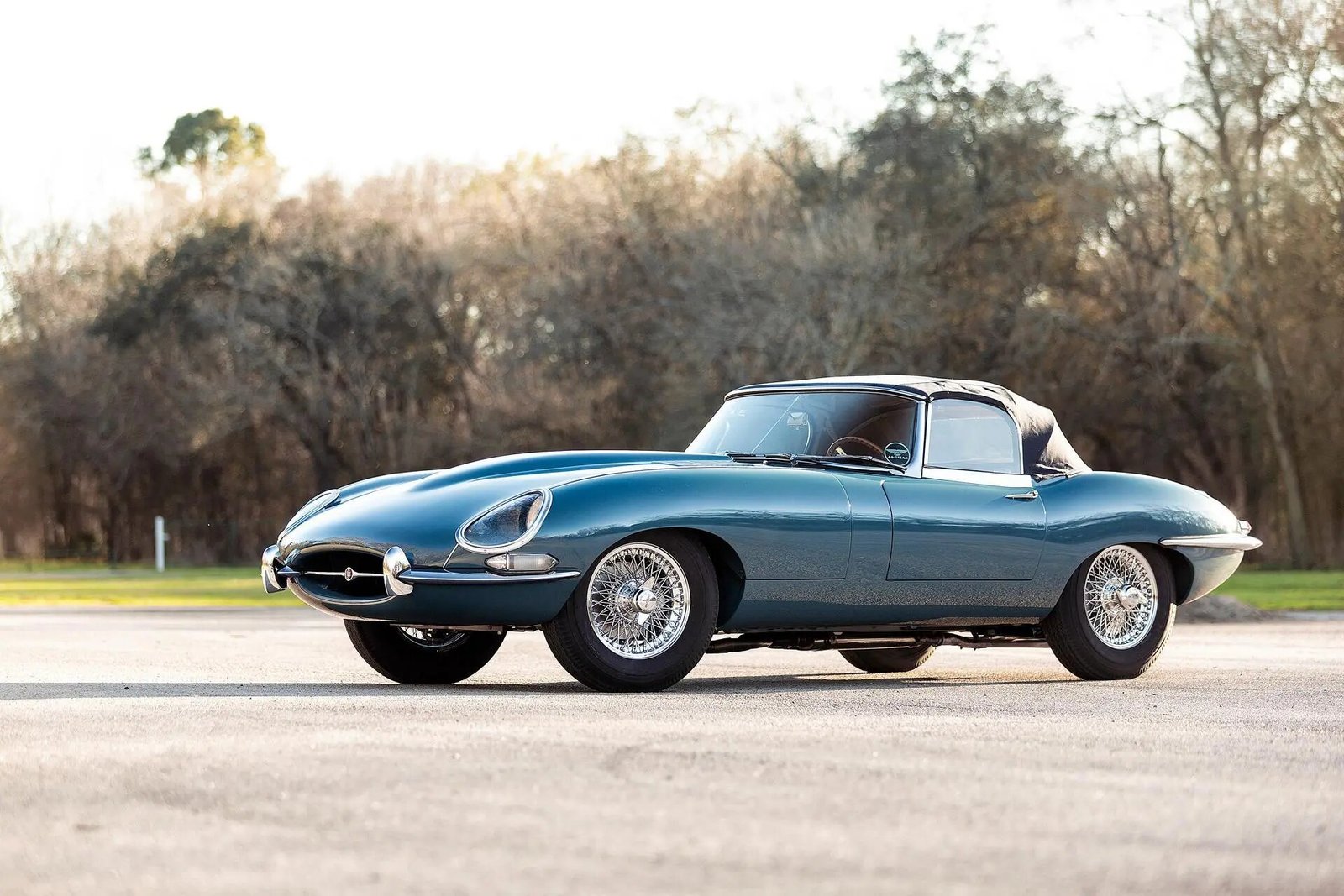 It underwent a refurbishment in the 2000s, and the car is finished in Cotswold Blue over dark blue leather upholstery, and power comes from a numbers-matching 3.8L inline-six paired with a four-speed manual gearbox.