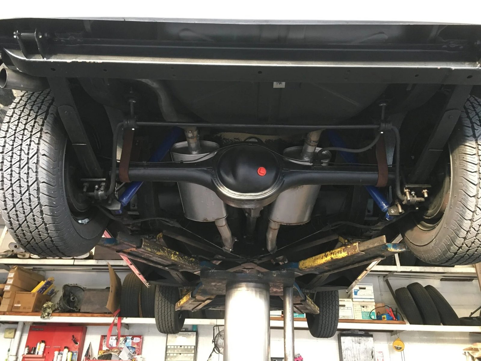 A set of white-stripe bias-ply tires are included in the sale, the shock absorbers and suspension bushings have been replaced.