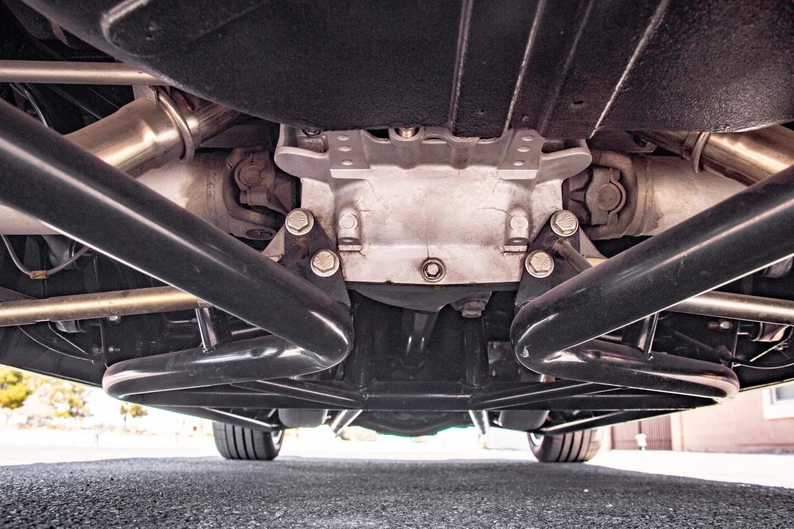 Power is sent to the rear wheels through a Tremec TKO five-speed manual transmission and a Dana 36 rear differential with 3.08:1 gearing.