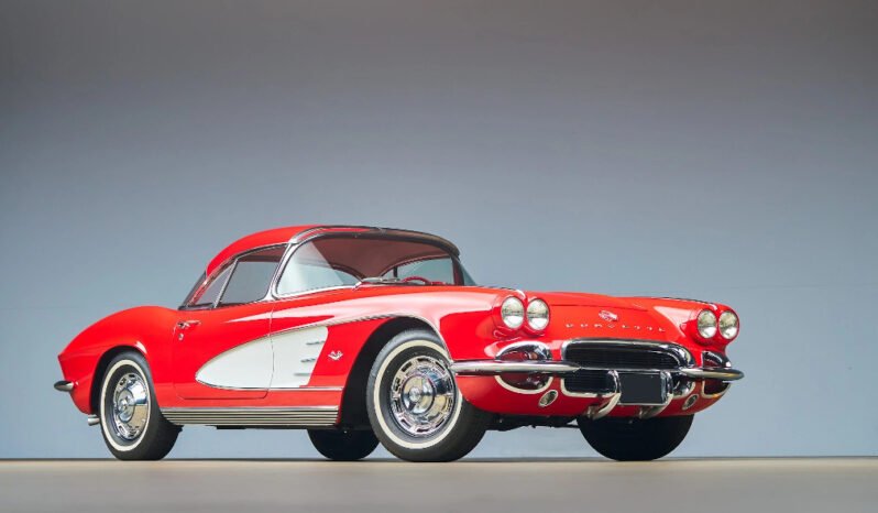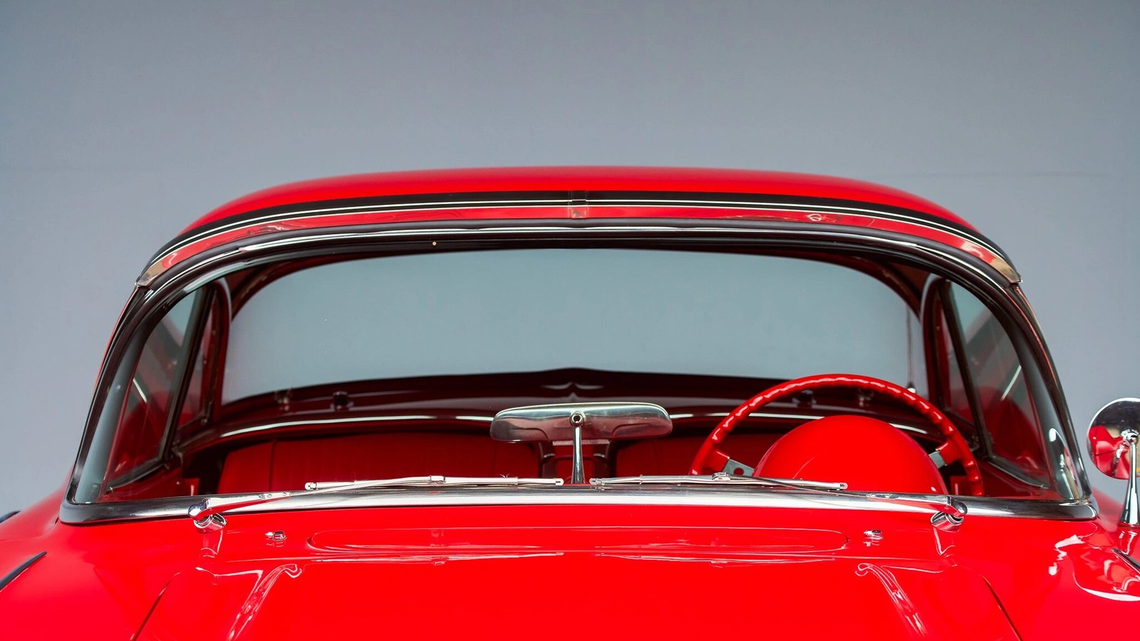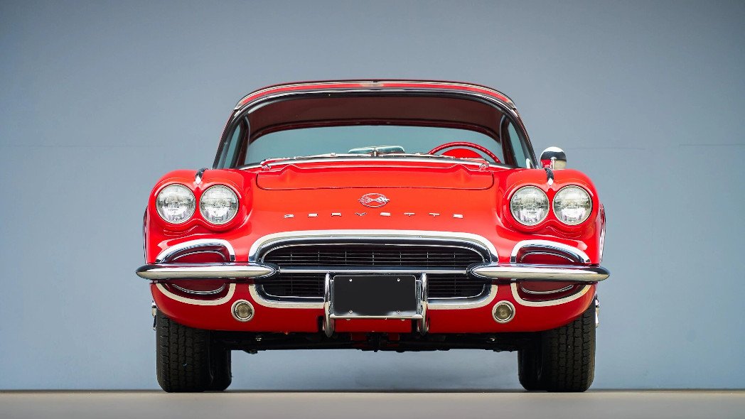 This 1962 Chevrolet Corvette is finished in Roman Red over color-coordinated vinyl upholstery and is powered by a 327ci V8 mated to a four-speed manual transmission.