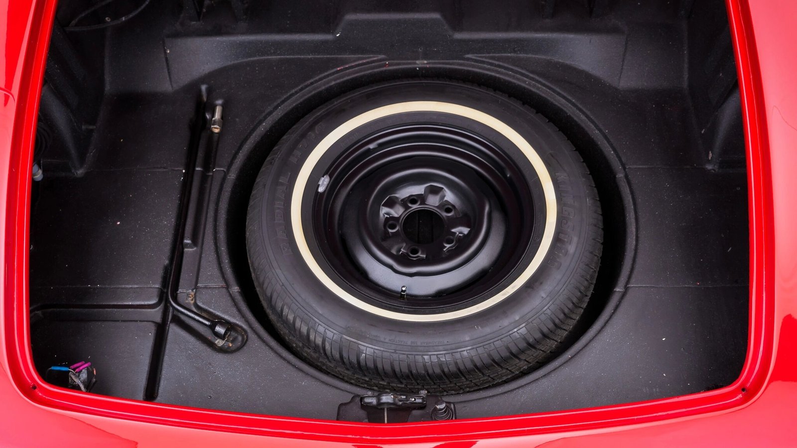 The white soft top was also replaced, and equipment includes a color-matched removable hardtop, a driver’s side mirror, split chrome bumpers, and dual exhaust outlets.