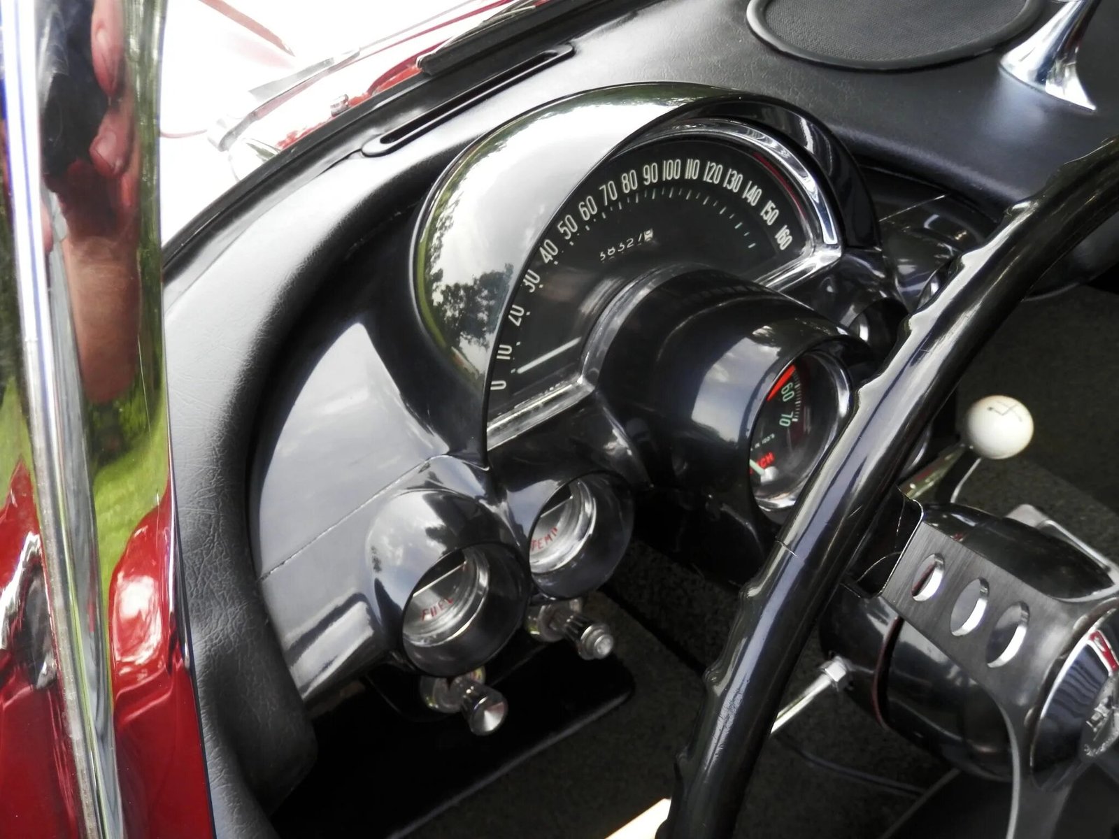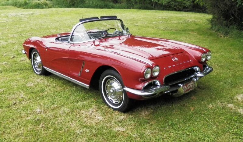 This 1962 Chevrolet Corvette is finished in Honduras Maroon over black vinyl. Power is provided by a 327ci V8 paired with a four-speed manual transmission and a 3.08:1 Positraction rear axle. Work under current ownership is said to have consisted of repainting the body, replacing the weatherstripping, and rebuilding the carburetor, generator, fuel pump, starter, clutch, carpet, and door seals. Equipment includes a black convertible soft top, a Hurst shifter, 15″ wheels with spinner-style covers, Firestone whitewall tires, chrome bumpers, and trim, and a dual exhaust system.