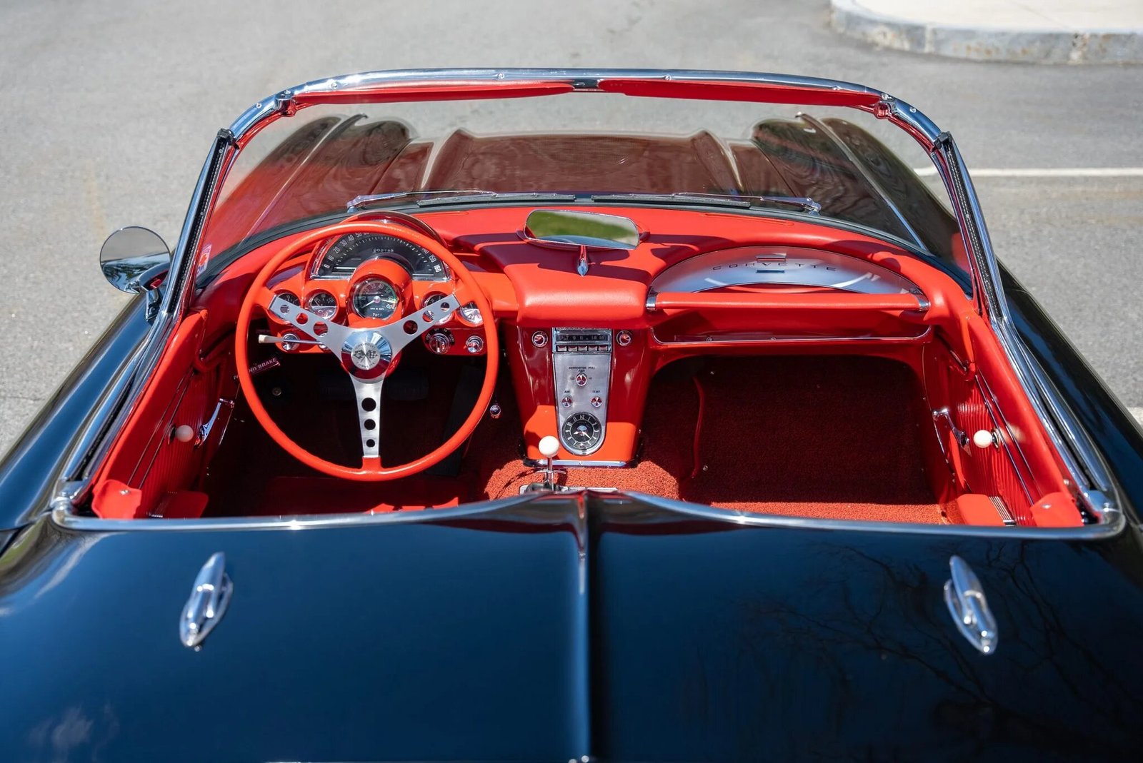 Additional details include color-matched fender coves, cast rocker-panel moldings, and “Fuel Injection” badging on each fender as well as the quad round tail lights and creased rear fenders that carried over to the C2.